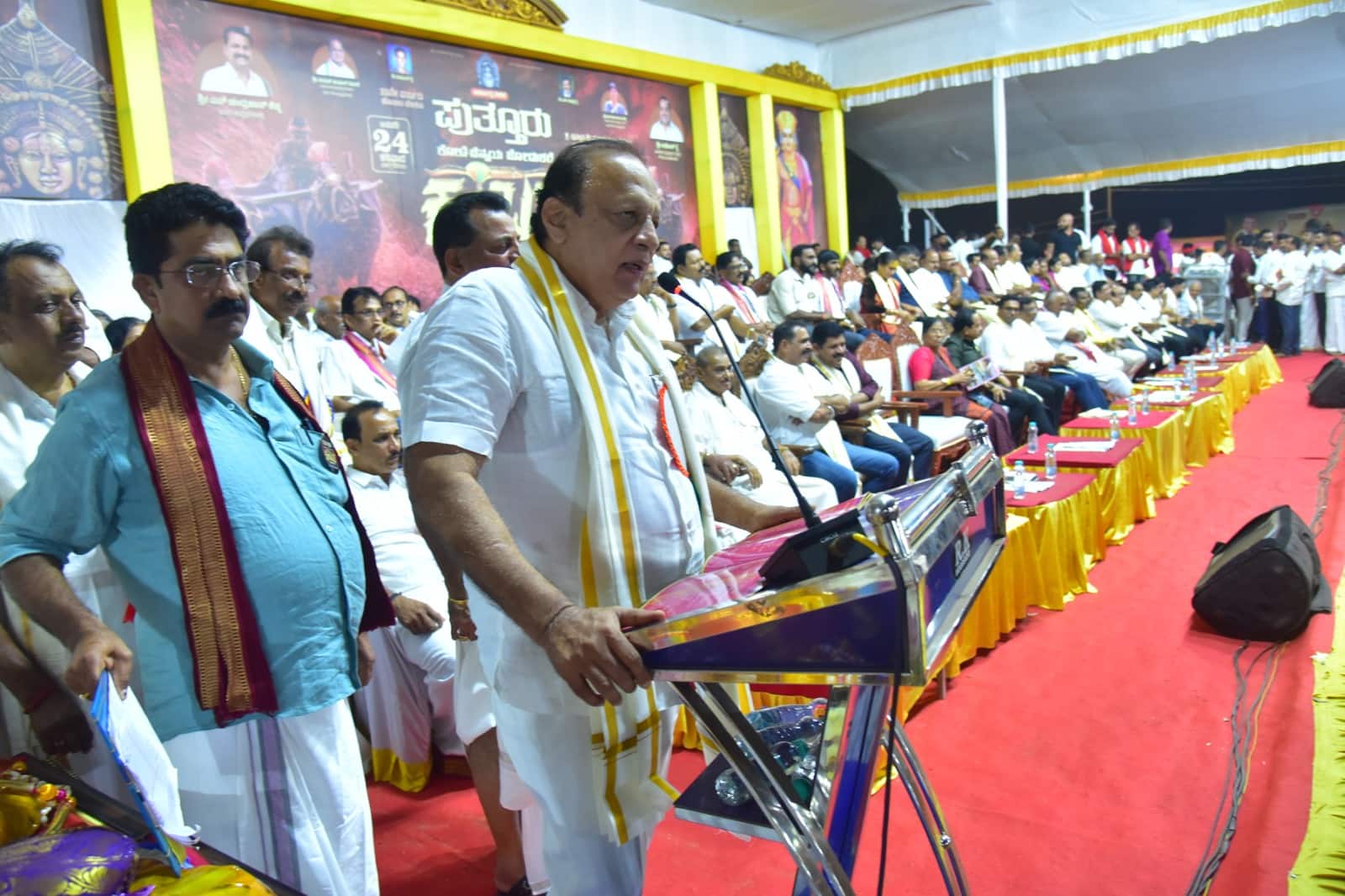 ಅವರು ಪುತ್ತೂರು ಕಂಬಳ ಸಮಿತಿಯ ನೇತೃತ್ವದಲ್ಲಿ ಪುತ್ತೂರಿನ ಶ್ರೀ ಮಹಾಲಿಂಗೇಶ್ವರ ದೇವಳದ ಮುಂಭಾಗದಲ್ಲಿರುವ ದೇವರಮಾರು ಗದ್ದೆಯಲ್ಲಿ ನಡೆದ 33ನೇ ವರ್ಷದ ಕೋಟಿ ಚೆನ್ನಯ ಹೊನಲು ಬೆಳಕಿನ ಜೋಡುಕರೆ ಕಂಬಳದ ಸಭಾ ಕಾರ್ಯಕ್ರಮದಲ್ಲಿ ಭಾಗವಹಿಸಿ ಮಾತನಾಡಿದರು.ನಮ್ಮಿಂದಾಗಿ ಕಂಬಳಕ್ಕೆ ಹೆಸರು ಬಂದಿದೆ ಎಂದು ನಾವು ಅಂದು ಕೊಂಡಿದ್ದೇವೆ. ಆದರೆ ಅದು ತಪ್ಪು ಬದಲಿಗೆ ಕಂಬಳದಿಂದಾಗಿ ನಮಗೆ ಕೀರ್ತಿ, ಹೆಸರು ಬಂದಿದೆ. ಕಂಬಳ ನಡೆಸಿದವರು ಎತ್ತರದ ಸ್ಥಾನಕ್ಕೆ ಏರಿದ್ದಾರೆ. ಈ ಕಂಬಳವನ್ನು ನಿಲ್ಲಿಸುವಂತೆ ಪ್ರಾಣಿ ದಯಾ ಸಂಘದವರು ಸಾಕಷ್ಟು ಪ್ರಯತ್ನ ನಡೆಸಿದ್ದರೂ ದೈವ ದೇವರುಗಳ ಅನುಗ್ರಹದಿಂದ ಹಾಗೂ ಸರ್ಕಾರದ ಸಹಕಾರದಿಂದಾಗಿ ಯಶಸ್ವಿಯಾಗಿ ಕಂಬಳ ನಡೆಸಲು ಸಾಧ್ಯವಾಗಿದೆ ಎಂದರು. ತುಳು ಚಲನಚಿತ್ರದ ನಿರ್ದೇಶಕ ರಾಜೇಂದ್ರ ಸಿಂಗ್ ಬಾಬು ಮಾತನಾಡಿ ತಾನು ತುಳು ಮತ್ತು ಕನ್ನಡದಲ್ಲಿ ಮಾಡಿರುವ ಬಿರ್ದ್ ದ ಕಂಬಳ ಮತ್ತು ವೀರ ಕಂಬಳ ಚಲನ ಚಿತ್ರವು ಸಂಪೂರ್ಣವಾಗಿ ಕಂಬಳಕ್ಕೆ ಸಂಬಂಧಿಸಿದ ಕಥೆಯಾಗಿದ್ದು, ಈ ಚಲನ ಚಿತ್ರವು ಫೆಬ್ರವರಿ ತಿಂಗಳಿನಲ್ಲಿ ಬಿಡುಗಡೆಯಾಗಲಿದೆ ಎಂದರು.ಬಿಗ್ ಬಾಸ್ ಖ್ಯಾತಿಯ ರಕ್ಷಿತಾ ಶೆಟ್ಟಿ, ಡೆಡ್ಲಿ ಸೋಮ ಚಲನ ಚಿತ್ರ ನಟ ಆದಿತ್ಯ, ಪಟ್ಟೆ ಹುಲಿ ಚಲನ ಚಿತ್ರದ ಶ್ರೇಯಸ್, ರಾಜ್ಯ ಕಂಬಳ ಎಸೋಸಿಯೇಷನ್ ಅಧ್ಯಕ್ಷ ಡಾ. ದೇವಿಪ್ರಸಾದ್ ಶೆಟ್ಟಿ ಬೆಳಪು, ಮಾಜಿ ಸಚಿವ ಬಿ. ರಮಾನಾಥ ರೈ ಮತ್ತಿತರರು ಮಾತನಾಡಿದರು. ಸಾಧಕರಿಗೆ ಸನ್ಮಾನ: