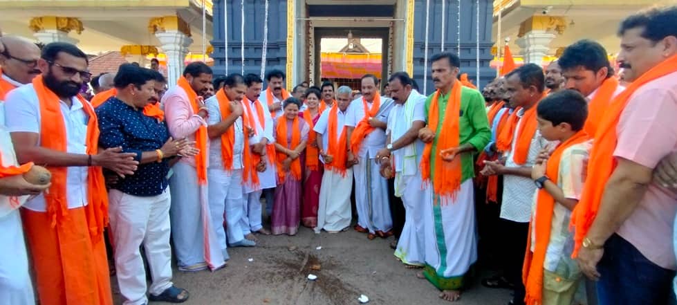 ಪುತ್ತೂರು: ಹನುಮಗಿರಿ ಶ್ರೀ ಕೋದಂಡರಾಮ, ಪಂಚಮುಖಿ ಆಂಜನೇಯ ಕ್ಷೇತ್ರದಲ್ಲಿ ಅಷ್ಟಬಂಧ ಬ್ರಹ್ಮಕಲಶೋತ್ಸವವು ಏ.೯ರಿಂದ ೧೨ರವರೆಗೆ ನಡೆಯಲಿದ್ದು, ಬುಧವಾರ ಇತಿಹಾಸ ಪ್ರಸಿದ್ಧ ಮಹತೋಭಾರ ಪುತ್ತೂರು ಶ್ರೀ ಮಹಾಲಿಂಗೇಶ್ವರ ದೇವಾಲಯದ ವಠಾರದಿಂದ ಬೃಹತ್ ಹಸಿರುವಾಣಿ ಹೊರೆಕಾಣಿಕೆ ಮೆರವಣಿಗೆ ನಡೆಯಿತು.ಶ್ರೀ ಮಹಾಲಿಂಗೇಶ್ವರ ದೇವರ ನಡೆಯಲ್ಲಿ ಪ್ರಾರ್ಥನೆ ಸಲ್ಲಿಸಿದ ಬಳಿಕ ದೇವಸ್ಥಾನದ ವಠಾರದಲ್ಲಿ ಶ್ರೀ ಮಹಾಲಿಂಗೇಶ್ವರ ದೇವಾಲಯದ ವ್ಯವಸ್ಥಾಪನ ಸಮಿತಿ ಅಧ್ಯಕ್ಷ ಪಂಜಿಗುಡ್ಡೆ ಈಶ್ವರ ಭಟ್ ಅವರು ತೆಂಗಿನಕಾಯಿ ಒಡೆಯುವ ಮೂಲಕ ಹಸಿರುವಾಣಿ ಹೊರೆಕಾಣಿಕೆ ಮೆರವಣಿಗೆಗೆ ಚಾಲನೆ ನೀಡಿದರು.
