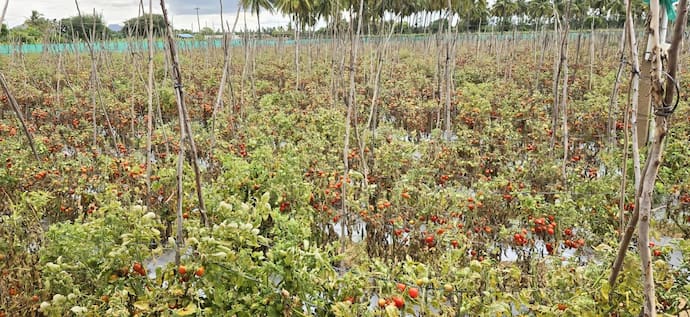 ಟೊಮೆಟೋಗೆ ಅಂಗಮಾರಿ ರೋಗಅಂಗಮಾರಿ ರೋಗದಿಂದಾಗಿ ಟೊಮೆಟೋ ಎಲೆ ಕಪ್ಪಾಗಿ ಉದುರುತ್ತಿದ್ದು, ಕಾಯಿ ಸಹ ಬೆಳವಣಿಗೆ ಕಾಣದೆ ಉದುರುತ್ತಿದೆ. ಟೊಮೆಟೋ ಮತ್ತು ಎಲೆಕೋಸಿನಲ್ಲಿ ರೋಗಬಾಧೆ ಹೆಚ್ಚಾಗಿರುವ ಕಾರಣ ಅದರ ನಿಯಂತ್ರಣಕ್ಕೆ ರೈತರು ಸಾವಿರಾರು ರೂ. ಖರ್ಚು ಮಾಡಿ ಕೀಟನಾಶಕ ಸಿಂಪಡಣೆ ಮಾಡಿದರೂ ಪ್ರಯೋಜನವಾಗುತ್ತಿಲ್ಲ. ಪರಿಣಾಮ ಉತ್ತಮ ಇಳುವರಿ, ಗುಣಮಟ್ಟದ ಫಸಲು ಕಾಣಿಸದೆ ರೈತರು ತೀವ್ರ ನಷ್ಟ ಅನುಭವಿಸುವಂತಹ ಪರಿಸ್ಥಿತಿ ನಿರ್ಮಾಣವಾಗಿದೆ.ಕೊಳೆಯುತ್ತಿರುವ ತರಕಾರಿ