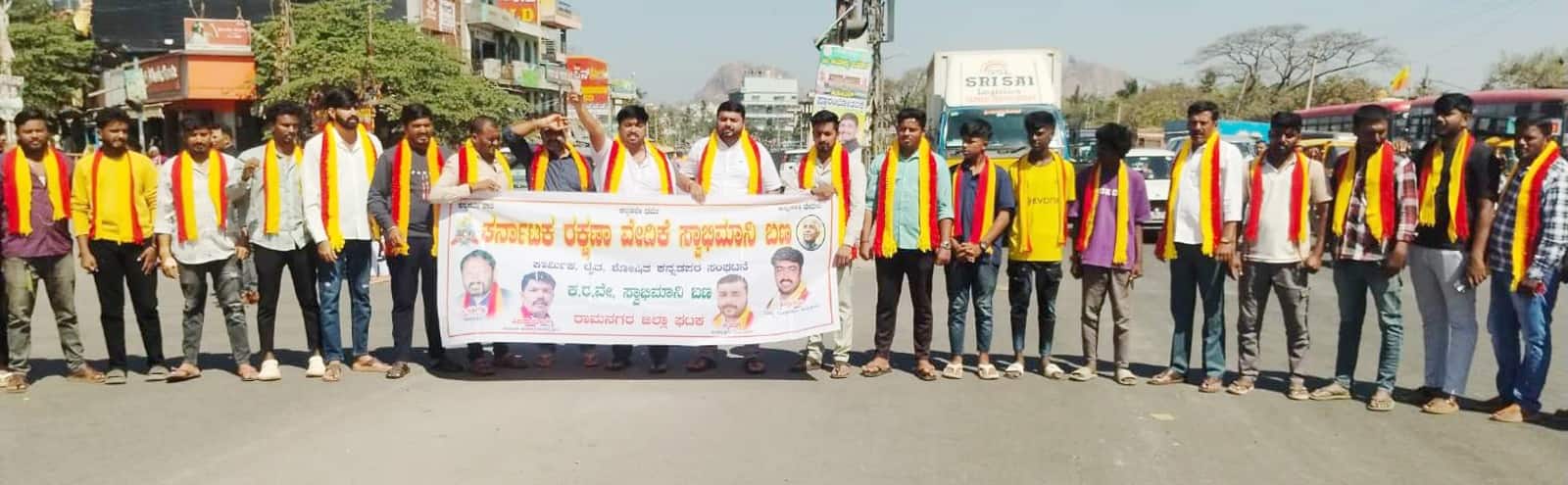 ಪ್ರತಿಭಟನೆಯಲ್ಲಿ ಕರ್ನಾಟಕ ರಕ್ಷಣಾ ವೇದಿಕೆ ಸ್ವಾಭಿಮಾನಿ ಬಣದ ಜಿಲ್ಲಾದ್ಯಕ್ಷ ಕಿರಣ್ಗೌಡ, ಜಿಲ್ಲಾ ಗೌರವಾಧ್ಯಕ್ಷ ರಾಜು ಚನ್ನಮಾನಹಳ್ಳಿ , ಜಿಲ್ಲಾ ಪ್ರಧಾನ ಕಾರ್ಯದರ್ಶಿ ಅದ್ಧೂರಿ ಲಿಂಗೇಶ್, ತಾಲೂಕು ಗೌರವಾಧ್ಯಕ್ಷ ಸಿದ್ದರಾಜು, ಯುವ ಘಟಕದ ಜಿಲ್ಲಾಧ್ಯಕ್ಷ ಸ್ವಾಮಿ, ಜಿಲ್ಲಾ ಜಂಟಿ ಕಾರ್ಯದರ್ಶಿ ರಮೇಶ್, ಹೋಟೆಲ್ ಘಟಕದ ಜಿಲ್ಲಾಧ್ಯಕ್ಷ ಮನು, ಪದಾಧಿಕಾರಿಗಳಾದ ಕುಮಾರ ಬಿಡದಿ, ಆಟೋ ರಾಮು. ಲಕ್ಷ್ಮೀಶ್ ಸುನೀಲ್, ಬಾಬು, ಸ್ವಾಮಿ, ಪ್ರಶಾಂತ್, ಮಯೂರ, ಮಧು, ಕಾರ್ತಿಕ, ಅರುಣ, ಚಂದು, ರೋಹನ, ಶರತ, ನಿತೀನ್, ನಂದೀಶ್, ವಿನೋದ, ಚೇತು ಮತ್ತಿತರರು ಭಾಗವಹಿಸಿದ್ದರು.