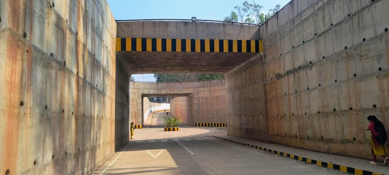 ಕರ್ನಾಟಕ ವಿವಿಗೆ ಹೋಗುವಾಗ ಮಾರ್ಗ ಮಧ್ಯೆದ ಶ್ರೀನಗರ ಬಳಿಯ ರೈಲ್ವೆ ಗೇಟ್ (ಎಲ್ಸಿ ನಂ. 299) ಬಳಿ ಕೆಳ ಸೇತುವೆಯು ಕಳೆದ ವಾರವಷ್ಟೇ ವಾಹನ ಸಂಚಾರಕ್ಕೆ ಮುಕ್ತವಾಗಿದ್ದು, ಸುಮಾರು ಒಂದೂವರೆ ತಿಂಗಳ ಹಿಂದಷ್ಟೇ ಹಳಿಯಾಳ ರೈಲ್ವೆ (ಎಲ್ಸಿ ನಂ. 300) ಗೇಟ್ ಬಳಿ ಕೆಳ ಸೇತುವೆಯಲ್ಲಿ ವಾಹನ ಸಂಚಾರ ಪ್ರಾರಂಭವಾಗಿದೆ.ಡಾ. ವಿ.ಎಸ್.ವಿ. ಪ್ರಸಾದ ನೇತೃತ್ವದ ಸ್ವರ್ಣಾ ಗ್ರುಪ್ ಆಫ್ ಕಂಪನಿಯಿಂದ ಈ ಸೇತುವೆ ಕಾಮಗಾರಿ ಎರಡು ವರ್ಷಗಳಿಂದ ನಡೆದಿದ್ದು, ತಲಾ ಸೇತುವೆಗೆ ₹ 43 ಕೋಟಿ ವೆಚ್ಚವಾಗಿದೆ. ನಿಗದಿತ ಅವಧಿಯಲ್ಲಿ ಕಾಮಗಾರಿ ಪೂರ್ಣಗೊಂಡಿದ್ದು ಜನತೆ ನಿಟ್ಟುಸಿರು ಬಿಟ್ಟಿದ್ದಾರೆ.