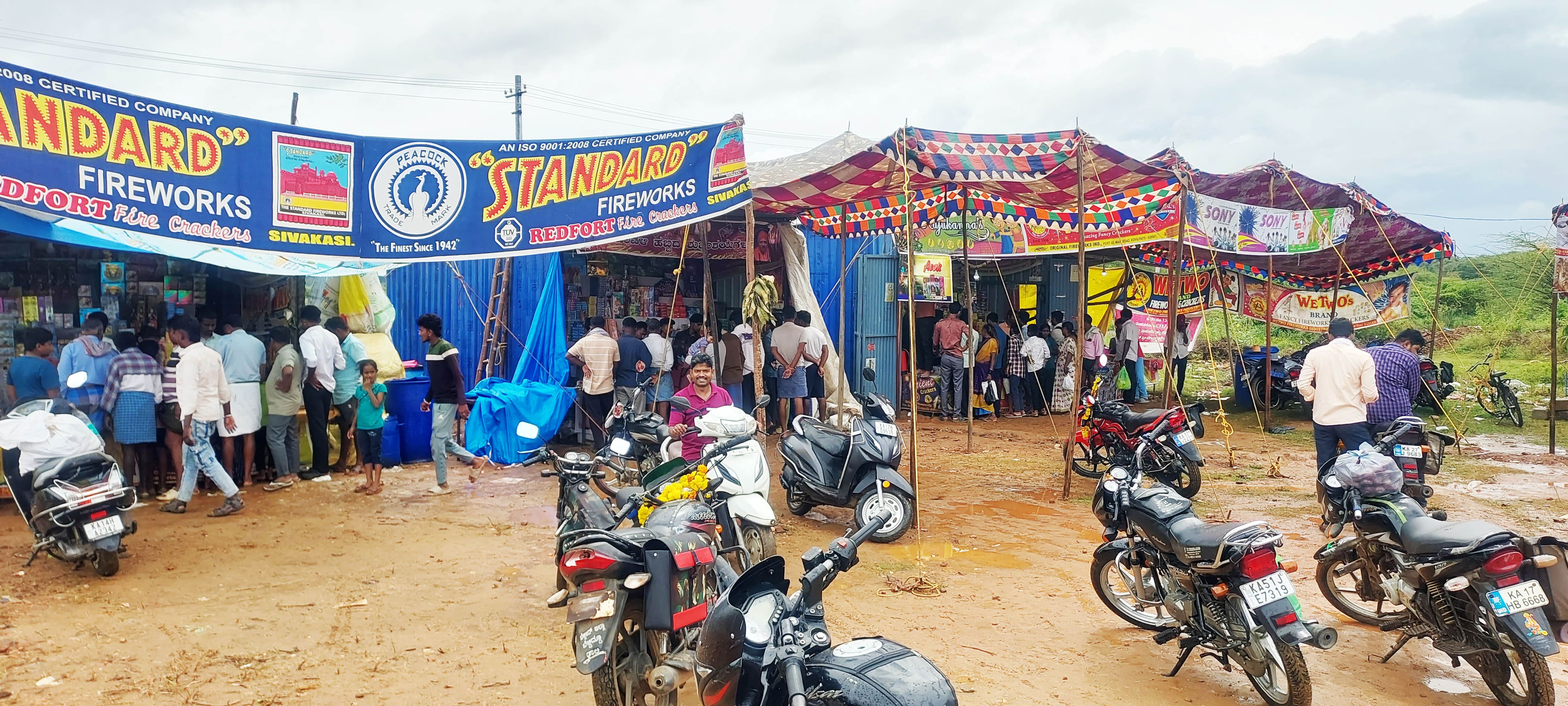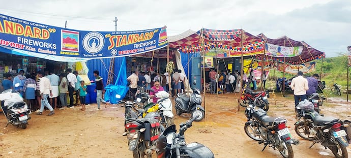 ಬೆಳಕಿನ ಹಬ್ಬ ದೀವಾವಳಿ ಎಂದರೆ ತಕ್ಷಣಕ್ಕೆ ನೆನಪಾಗುವುದು ಬಣ್ಣಬಣ್ಣದ ಪಟಾಕಿಗಳು. ದೀಪಾವಳಿ ಹಬ್ಬ ಬರುತ್ತಿದ್ದಂತೆ ಪಟಾಕಿ ವ್ಯಾಪಾರಿಗಳು ಕೂಡ ಉತ್ತಮ ವ್ಯಾಪಾರ ವಹಿವಾಟಿನ ನಿರೀಕ್ಷೆಯಲ್ಲಿದ್ದರು. ಆದರೆ ಅವರಿಗೆ ಎಡಬಿಡದೇ ಸುರಿದ ಮಳೆಯಿಂದ ನಿರೀಕ್ಷಿತ ವ್ಯಾಪಾರವಾಗದೆ ಕಂಗಾಲಾಗಿದ್ದಾರೆ.ತಾಲೂಕು ಅಡಳಿತ ಸೂಚಿಸಿದ ಸ್ಥಳಗಳಲ್ಲಿ ಸರ್ಕಾರದ ಮಾರ್ಗಸೂಚಿಗಳಂತೆ ಪಟಾಕಿ ಅಂಗಡಿಗಳನ್ನು ಹಾಕಿಕೊಂಡು ವ್ಯಾಪಾರ ಮಾಡಲು ಮುಂದಾಗಿದ್ದರು. ಈ ಬಾರಿ ಕೂಡ ಸೋಮವಾರದಿಂದಲೇ ಪಟ್ಟಣದ ಶೆಟ್ಟಿ ಲೇಔಟ್ನಲ್ಲಿ ಸ್ಥಳೀಯ ಹಲವಾರು ಜನ ಪಟಾಕಿ ವ್ಯಾಪಾರಸ್ಥರು ಅಂಗಡಿಗಳನ್ನು ಹಾಕಿಕೊಂಡು ಉತ್ತಮ ವ್ಯಾಪಾರದ ನಿರೀಕ್ಷೆಯಲ್ಲಿದ್ದರು.