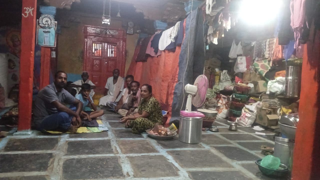 ಮಳೆಯಿಂದಾಗಿ ಮನೆ ಹಾನಿಯಾಗಿರುವ ಸಂತ್ರಸ್ತ ಗುರುಪಾದಪ್ಪ ಆಯೆಟ್ಟಿ ಗ್ರಾಮದಲ್ಲಿರುವ ಮಾರುತಿ ದೇವಸ್ಥಾನದಲ್ಲಿ ತಮ್ಮ ಕುಟುಂಬದ 8 ಜನರೊಂದಿಗೆ ವಾಸವಾಗಿದ್ದಾರೆ.
