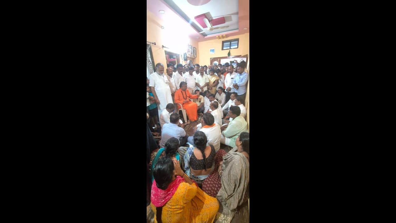 ಮೃತನ ತಂದೆ ನಿಂಗಜ್ಜ, ತಾಯಿ ದೇವಮ್ಮ, ಸಹೋದರಿಯರಾದ ಅನ್ನಪೂರ್ಣ, ದುರ್ಗಮ್ಮ, ಉಮಾ, ಚಿಕ್ಕಪ್ಪ ಯಮನೂರಪ್ಪ ಅವರಿಗೆ ಧೈರ್ಯದಿಂದ ಇರುವಂತೆಯೂ ಹೇಳಿದರು.ಈ ವೇಳೆ ಮಠದ ಧರ್ಮದರ್ಶಿ ರಾಮಣ್ಣ ಕಲ್ಲನವರ, ಅಖಿಲ ಕರ್ನಾಟಕ ವಾಲ್ಮೀಕಿ ನಾಯಕ ಮಹಾಸಭಾದ ಜಿಲ್ಲಾಧ್ಯಕ್ಷ ಕೆ.ಎನ್. ಪಾಟೀಲ್, ರಾಜ್ಯ ಸಂಘಟನಾ ಕಾರ್ಯದರ್ಶಿ ಸುರೇಶ ಡೊಣ್ಣಿ, ಜಿಲ್ಲಾ ಪ್ರಧಾನ ಕಾರ್ಯದರ್ಶಿ ಶರಣಪ್ಪ ನಾಯಕ, ಯುವ ಘಟಕದ ಜಿಲ್ಲಾಧ್ಯಕ್ಷ ರವಿ ವಕೀಲರು, ಮುಖಂಡರಾದ ಟಿ. ರತ್ನಾಕರ, ಬಿಲ್ಗಾರ್ ನಾಗರಾಜ, ರಾಮಣ್ಣ ನಾಯಕ, ಹನುಮೇಶ ನಾಯಕ, ಮಂಜುನಾಥ ಗೊಂಡಬಾಳ, ಕರಿಯಪ್ಪ, ಚನ್ನಪ್ಪ, ಹನುಮಂತಪ್ಪ, ಶಿವರಡ್ಡಿ ವಕೀಲ, ಗಂಗಾವತಿ ಜೋಗದ ವೀರಭದ್ರಪ್ಪ, ನಾರಾಯಣಪ್ಪ ನಾಯಕ, ಶುಕ್ರಾಜ್ ತಾಳಕೇರಿ, ಮಾನಪ್ಪ ಇದ್ದರು.ಶ್ರೀಗಳಿಂದ ಗೌಪ್ಯ ಸಭೆ: