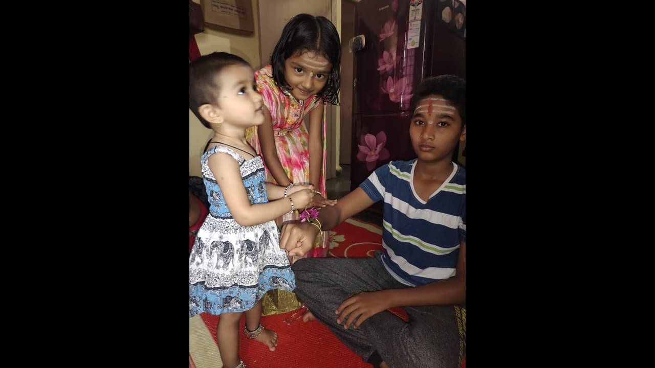 ಹಾವೇರಿ: ಶ್ರಾವಣ ಮಾಸದ ನೂಲಹುಣ್ಣಿಮೆ ಅಂಗವಾಗಿ ಸಹೋದರ ಸಹೋದರಿಯರ ಭ್ರಾತೃತ್ವದ ಸಂಕೇತ ಸಾರುವ ರಕ್ಷಾಬಂಧನ ಹಬ್ಬವನ್ನು ಶನಿವಾರ ನಗರ ಸೇರಿದಂತೆ ಜಿಲ್ಲಾದ್ಯಂತ ಅಣ್ಣ ತಮ್ಮಂದಿರಿಗೆ ರಾಖಿ ಕಟ್ಟುವ ಮೂಲಕ ಯುವತಿಯರು, ಮಹಿಳೆಯರು ಮತ್ತು ಮಕ್ಕಳು ಸಡಗರ ಸಂಭ್ರಮದಿಂದ ಆಚರಣೆ ಮಾಡಿದರು.