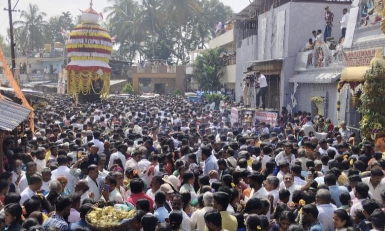 ಥೋತ್ಸವದ ಅಂಗವಾಗಿ ದೇಗುಲವು ವಿವಿಧ ರೀತಿಯ ಹೂಗಳಿಂದ ಅಲಂಕೃತಗೊಂಡಿತ್ತು. ಹಗಲು 12 ಗಂಟೆಗೆ ಸರಿಯಾಗಿ ಪ್ರಸನ್ನ ಶ್ರೀ ಸುಬ್ರಹ್ಮಣ್ಯಸ್ವಾಮಿ ದೇಗುಲದ ಮುಂಭಾಗದಲ್ಲಿ ನಿಲ್ಲಿಸಿ ವಿವಿಧ ಪುಷ್ಪಗಳಿಂದ ಹಾಗೂ ಬಗ್ಗೆ ಬಗೆಯ ವರ್ಣದ ಬಟ್ಟೆಗಳಿಂದ ಅಲಂಕರಿಸಿದ 40 ಅಡಿ ಎತ್ತರದ ರಥದಲ್ಲಿ ಉತ್ಸವ ಮೂರ್ತಿಯನ್ನು ಕುಳ್ಳಿರಿಸಿ, ಪೂಜಾ ಕೈಂಕರ್ಯ ನೆರವೇರಿಸಿದರು. ಛತ್ರಿಚಾಮರ, ಚಂಡೆವಾದ್ಯ ಇನ್ನಿತರ ಜನಪದ ಕಲಾತಂಡಗಳೊಂದಿಗೆ ಸುತ್ತಮುತ್ತಲಿನ ವಿವಿಧ ಭಾಗಗಳಿಂದ ಬಂದಿದ್ದ ಸಾವಿರಾರು ಭಕ್ತರ ಸಮಯದಲ್ಲಿ ಹರ್ಷೋದ್ಗಾರದೊಂದಿಗೆ ಸಾಮೂಹಿಕವಾಗಿ ರಥವನ್ನು ಎಳೆಯುತ್ತಾ ದೇವಸ್ಥಾನದ ಮುಂಭಾಗದಿಂದ ರಥದ ಬೀದಿಯಲ್ಲಿ ತೆರಳಿ ಕಾವೇರಿ ನದಿ ಸೇತುವೆಯವರೆವಿಗೂ ಹಾಗೂ ಅಲ್ಲಿಂದ ಮತ್ತೆ ಸ್ವಸ್ಥಾನಕ್ಕೆ ರಥವನ್ನು ಎಳೆದು ತಂದು ನಿಲ್ಲಿಸಿದರು.