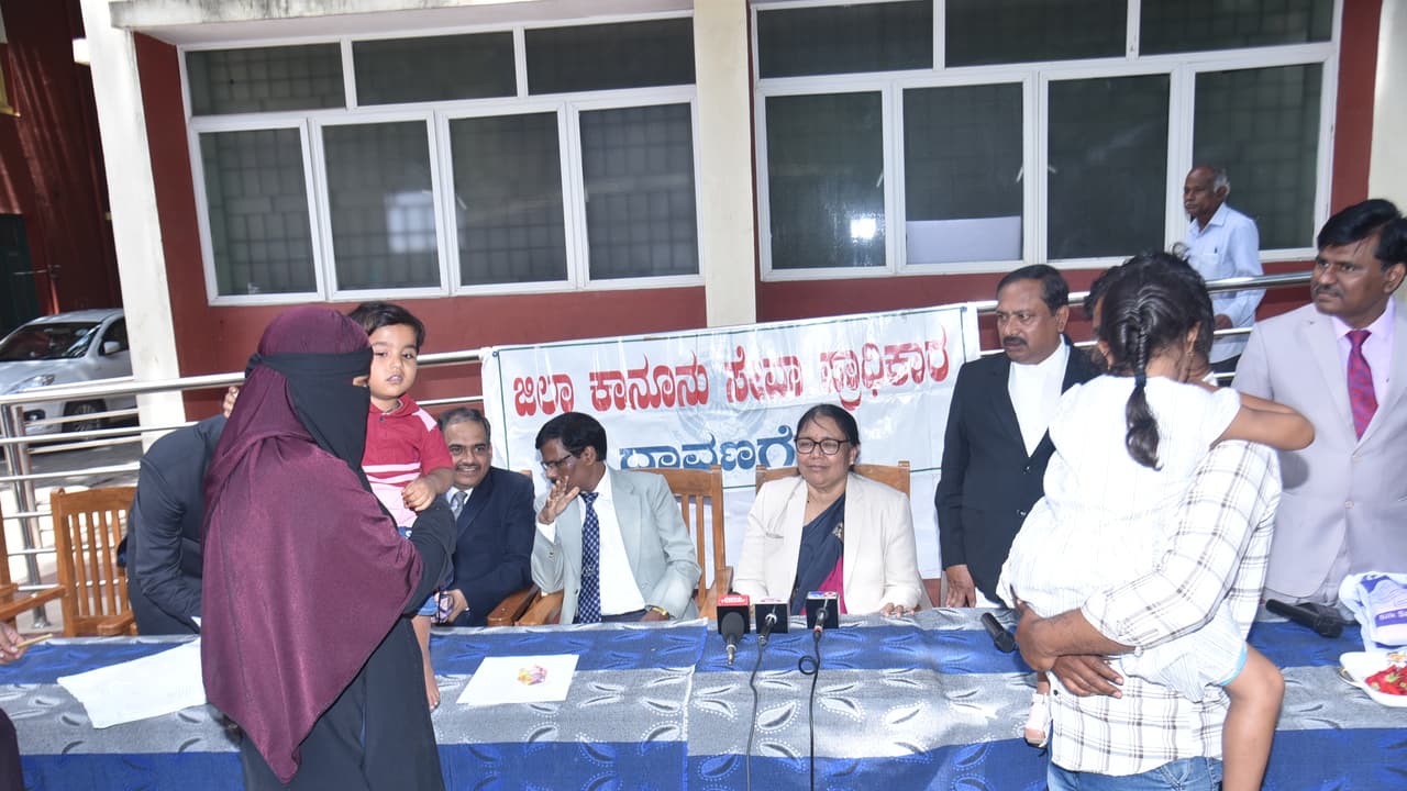 ದಾವಣಗೆರೆ ಜಿಲ್ಲಾ ನ್ಯಾಯಾಲಯದಲ್ಲಿ ರಾಷ್ಟ್ರೀಯ ಲೋಕ್ ಅದಾಲತ್ ನಲ್ಲಿ ನ್ಯಾಯಾಧೀಶರು, ವಕೀಲರು, ನ್ಯಾಯಾಂಗ ಇಲಾಖೆ ಸಿಬ್ಬಂದಿ ಹಾಗೂ ಮತ್ತೆ ಒಂದಾದ ಜೋಡಿಗಳು.