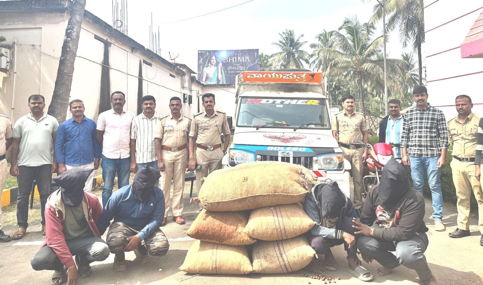 ಬಂಧಿತರಾದ 4 ಆರೋಪಿಗಳೂ ಭದ್ರಾವತಿ ತಾಲೂಕಿನ ಆಗರದಹಳ್ಳಿಯವರಾಗಿದ್ದಾರೆ. ಎಲ್ಲರೂ ಕೂಲಿ ಕೆಲಸ ಮಾಡುತ್ತಿದ್ದು, 27 ವರ್ಷದ ವೀರೇಶ್, 24 ವರ್ಷದ ಮಹೇಶ್, 22 ವರ್ಷದ ಕಾರ್ತೀಕ್, 23 ವರ್ಷದ ಶ್ರೀಹರಿ ಅವರನ್ನು ಬಂಧಿಸಲಾಗಿದೆ. ಆರೋಪಿಗಳಿಂದ 2.56 ಲಕ್ಷ ರುಪಾಯಿ ಮೌಲ್ಯದ 44 ಕ್ವಿಂಟಾಲ್ ಹಸಿ ಅಡಿಕೆ, ಪಿಕಪ್ ವಾಹನ, ಬೈಕ್ ವಶಪಡಿಸಿಕೊಳ್ಳಲಾಗಿದೆ. ಡಕಾಯತಿ ಪ್ರಕರಣವನ್ನು ಯಶಸ್ವಿಯಾಗಿ ಬೇಧಿಸಿದ ಎನ್.ಆರ್.ಪುರ ಪೊಲೀಸ್ ತಂಡಕ್ಕೆ ಜಿಲ್ಲಾ ಪೊಲೀಸ್ ಅಧೀಕ್ಷಕರು ಶ್ಲಾಘನೆ ವ್ಯಕ್ತಪಡಿಸಿದ್ದಾರೆ.