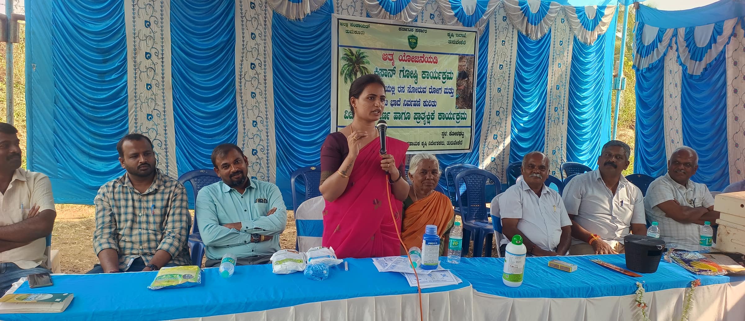 ಕೆಂಪು ಮೂತಿ ಹುಳದ ಕಾಟದಿಂದ ತಾಲೂಕಿನ ರೈತರ ಜೀವನಾಡಿಯಾಗಿರುವ ಕಲ್ಪವೃಕ್ಷಕ್ಕೆ ಸಂಚಕಾರ ಬಂದೊದಗಿದೆ. ಹಾಗಾಗಿ ರೈತಾಪಿಗಳು ಕೂಡಲೇ ಎಚ್ಚೆತ್ತುಕೊಂಡು ಅದರ ಉಪಶಮನಕ್ಕೆ ಮುಂದಾಗಬೇಕೆಂದು ತಾಲೂಕು ಕೃಷಿ ಸಹಾಯಕ ನಿರ್ದೇಶಕಿ ಬಿ.ಪೂಜಾ ತಾಲೂಕಿನ ರೈತಾಪಿಗಳಿಗೆ ಕರೆ ನೀಡಿದರು.ತಾಲೂಕಿನ ಅಜ್ಜೇನಹಳ್ಳಿ – ನೀರಗುಂದ ಬಳಿಯ ಕೋಳಘಟ್ಟ ಕಾವಲ್ ನಲ್ಲಿರುವ ಎನ್.ಟಿ.ಪ್ರಸಾದ್ ರವರ ತೋಟದಲ್ಲಿ ಕೋಳಘಟ್ಟ ಪ್ರಾಥಮಿಕ ಕೃಷಿ ಪತ್ತಿನ ಸಹಕಾರ ಸಂಘ, ತೋಟಗಾರಿಕಾ ಇಲಾಖೆ, ಕೃಷಿ ಇಲಾಖೆ ಯ ಆಶ್ರಯದಲ್ಲಿ ಹಮ್ಮಿಕೊಳ್ಳಲಾಗಿದ್ದ ತೆಂಗಿನ ಮರದಲ್ಲಿ ರಸ ಸೋರುವ ರೋಗ ನಿಯಂತ್ರಣ, ಮತ್ತು ಕೀಟಭಾಧೆ ನಿರ್ವಹಣೆ ಕುರಿತು ನಡೆಸಿದ ವಿಚಾರಗೋಷ್ಠಿ ವೇಳೆ ಅವರು ಮಾತನಾಡುತ್ತಿದ್ದರು. ಇತ್ತೀಚೆಗೆ ತೆಂಗಿನ ಮರಗಳಿಗೆ ಕೆಂಪು ಮೂತಿಯ ಹುಳಗಳ ಬಾಧೆ ಹೆಚ್ಚುತ್ತಿದೆ. ಮರದ ಬುಡದಲ್ಲಿ ಸಣ್ಣ ರಂದ್ರ ತೋಡುವ ಕೆಂಪುಮೂತಿ ಹುಳ ಮರದ ಜೀವಶಕ್ತಿಯನ್ನು ಕುಂದಿಸುತ್ತದೆ. ಮರದ ಬುಡದಿಂದಲೇ ಮರವನ್ನು ಕೊರೆಯುತ್ತದೆ. ರಂದ್ರವಾಗುತ್ತಿದ್ದಂತೆ ಮರದಿಂದ ರಸ ಸೋರುವಿಕೆ ಆರಂಭವಾಗಿ ಮರ ನಿಶ್ಶಕ್ತಿ ಹೊಂದುತ್ತದೆ. ಮರದಲ್ಲಿ ರಸ ಸೋರುತ್ತಿದೆ ಎಂದು ತಿಳಿದೊಡನೇ ಇದು ಕೆಂಪು ಮೂತಿ ಹುಳುವಿನ ಕೃತ್ಯ ಎಂದು ತಿಳಿದ ಕೂಡಲೇ ಅದನ್ನು ನಿವಾರಿಸುವ ಕಾರ್ಯ ಮಾಡಬೇಕು. ಇಲ್ಲದಿದ್ದಲ್ಲಿ ತೆಂಗಿನ ಮರ ಸಂಪೂರ್ಣ ಸತ್ವ ಕಳೆದುಕೊಂಡು ಸುಳಿ ಒಣಗಿ ಬಿದ್ದು ಹೋಗುತ್ತದೆ ಎಂದು ಎಚ್ಚರಿಸಿದರು. ಪ್ರಗತಿ ಪರ ರೈತ ಎನ್. ಟಿ.ಪ್ರಸಾದ್ ಮಾತನಾಡಿ ರೈತರು ಮೊದಲು ಸೋಮಾರಿತನವನ್ನು ಬಿಡಬೇಕು. ರೈತರಿಗೆ ವ್ಯವಸಾಯವಿಲ್ಲದೇ ಬೇರೆ ಉದ್ಯೋಗವಿಲ್ಲ. ತಮ್ಮ ತೋಟದಲ್ಲಿ ರೋಗ ತಗುಲಿರುವ ಮರವನ್ನು ಆರಂಭದಲ್ಲೇ ಪತ್ತೆ ಹಚ್ಚಿ ಅದನ್ನು ಶಮನ ಮಾಡಬೇಕು. ತಪ್ಪಿದಲ್ಲಿ ಅಕ್ಕಪಕ್ಕದ ಮರಗಳಿಗೂ ಹಬ್ಬಿ ಹತ್ತಾರು ವರ್ಷಗಳಿಂದ ಬೆಳೆಸಿದ್ದ ಮರಗಳು ನಮ್ಮ ಕಣ್ಣಮುಂದೆಯೇ ಬಿದ್ದು ಹೋಗುವುದನ್ನು ಕಾಣಬೇಕಾಗುತ್ತದೆ ಎಂದು ಎಚ್ಚರಿಸಿದರು. ಪ್ರಗತಿ ಪರ ರೈತ ನಾಗರಾಜು ಮಾತನಾಡಿ ನಾವು ಮಣ್ಣಿನ ಸತ್ವವನ್ನು ಅರಿಯದೇ ಮನಸ್ಸಿಗೆ ಬಂದ ಹಾಗೇ ಗೊಬ್ಬರಗಳನ್ನು ಹಾಕುತ್ತಿದ್ದೇವೆ. ಒಂದೆಡೆ ಅನವಶ್ಯಕವಾಗಿ ಭೂಮಿಗೆ ರಾಸಾಯನಿಕವನ್ನು ಹಾಕಿ ಮಣ್ಣಿನ ಸತ್ವವನ್ನು ಹಾಳು ಮಾಡುತ್ತಿದ್ದೇವೆ. ಜೊತೆಗೆ ಹಣವೂ ಹಾಳಾಗುತ್ತಿದೆ. ಹಾಗಾಗಿ ಮೊದಲು ಮಣ್ಣಿನ ಪರೀಕ್ಷೆ ಮಾಡಿಸಬೇಕು. ಆ ಮಣ್ಣಿಗೆ ಯಾವ ಬೆಳೆ ಅನುಕೂಲವಾಗಲಿದೆ. ಎಷ್ಟು ಪ್ರಮಾಣದಲ್ಲಿ ಗೊಬ್ಬರವನ್ನು ಹಾಕಬೇಕೆಂದು ಅರಿಯಬೇಕೆಂದರು.