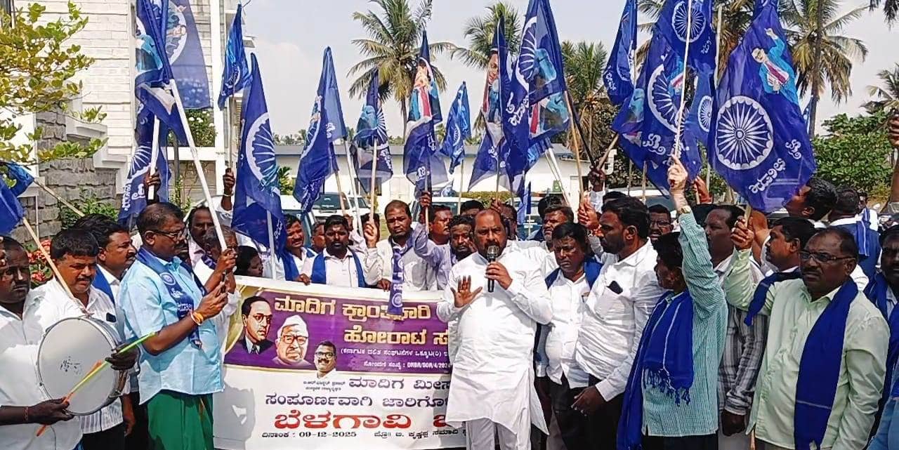 35 ವರ್ಷಗಳ ಹೋರಾಟದ ಫಲವಾಗಿ ರಾಜ್ಯ ಸರ್ಕಾರ ಒಳ ಮೀಸಲಾತಿಯನ್ನು ಜಾರಿಗೆ ತಂದಿದೆ. ಆದರೂ ಈಗಲೂ ಒಳ ಮೀಸಲಾತಿ ಯೋಜನೆಯು ಪೂರ್ಣ ಪ್ರಮಾಣದಲ್ಲಿ ಜಾರಿಯಾಗುತ್ತಿಲ್ಲ. ಈ ಯೋಜನೆ ಜಾರಿಗೆ ಕೆಲವು ಪಟ್ಟಭದ್ರರು ಅಡ್ಡಿಯಾಗಿರುವುದು ಬೇಸರ ಮೂಡಿಸಿದೆ ಎಂದರು.ಸಚಿವ ಎಚ್.ಸಿ.ಮಹಾದೇವಪ್ಪ ಹಾಗೂ ಇತರೆ ಕೆಲವರು ಈ ಯೋಜನೆ ಜಾರಿಗೆ ಅಡ್ಡಿಯಾಗಿರುವುದು ಬಹಿರಂಗವಾಗಿದೆ. ಇವರ ಒತ್ತಡಕ್ಕೆ ಮಣಿದ ರಾಜ್ಯ ಸರ್ಕಾರವು ಇಂದು, ನಾಳೆ ಎಂದು ಕಾಲಹರಣ ಮಾಡುತ್ತಿದೆ. ಶೋಷಿತರಲ್ಲಿ ಅತ್ಯಂತ ಶೋಷಣೆಗೆ ಒಳಗಾದ ಮಾದಿಗ ಸಮುದಾಯದ ಮಕ್ಕಳ ಭವಿಷ್ಯದ ಜತೆ ಯಾರೂ ಚೆಲ್ಲಾಟ ಆಡಬಾರದು, ಕೈಗೆ ಬಂದ ತುತ್ತು ಬಾಯಿಗೆ ಬರಲಿಲ್ಲ ಎಂಬ ದುಸ್ಥಿತಿಯನ್ನು ಸೃಷ್ಟಿ ಮಾಡುತ್ತಿರುವವರ ವಿರುದ್ಧ ಸಮುದಾಯ ಬಂಡೇಳುವ ಮುನ್ನ ಒಳಮೀಸಲಾತಿಯನ್ನು ಪೂರ್ಣ ಪ್ರಮಾಣದಲ್ಲಿ ಜಾರಿ ಮಾಡಲು ಸರ್ಕಾರ ಮುಂದಾಗಬೇಕೆಂದು ಎಚ್ಚರಿಕೆ ನೀಡಿದರು.