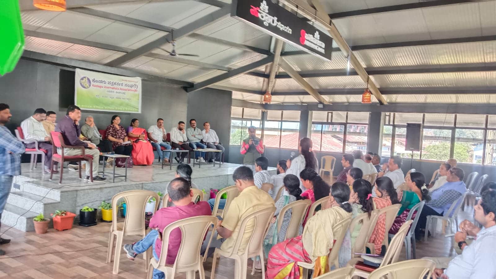 ಕಾರ್ಯಕ್ರಮದಲ್ಲಿ ಪುರಸಭೆಯ ಮಾಜಿ ಸದಸ್ಯರಾದ ಡಾ. ಎಂ.ಜಿ. ಪಾಟ್ಕರ್ , ಕೊಡಗು ಪತ್ರಕರ್ತರ ಸಂಘದ ಪ್ರಧಾನ ಕಾರ್ಯದರ್ಶಿ ಸುರೇಶ್ ಬಿಳಿಗೇರಿ, ಖಜಾಂಚಿ ಟಿ.ಕೆ. ಸಂತೋಷ್, ರೋಟರಿ ಮಿಸ್ಟಿ ಹಿಲ್ಸ್ ಅಧ್ಯಕ್ಷ ರತ್ನಾಕರ್ ರೈ, ಕಾರ್ಯದರ್ಶಿ ಬಿ.ಕೆ. ಕಾರ್ಯಪ್ಪ, ಕೊಡಗು ಅಭಿವೃದ್ಧಿ ಸಮಿತಿಯ ಪ್ರಸನ್ನ ಭಟ್, ರೋಟರಿ ವುಡ್ಸ್ ಕಾರ್ಯದರ್ಶಿ ಪ್ರಮೀಳಾ ಶೆಟ್ಟಿ , ನಗರಸಭಾ ಮಾಜಿ ಅಧ್ಯಕ್ಷೆ ಜುಲೈಕಾಬಿ, ಸದಸ್ಯರಾದ ಶ್ವೇತಾ ಪ್ರಶಾಂತ್, ಮೇರಿ ವೇಗಸ್, ಶಾರದಾ ನಾಗರಾಜ್, ಚಿತ್ರಾವತಿ, ಮಿನಾಜ್ ಪ್ರವೀಣ್ ಸೇರಿದಂತೆ ವಿವಿಧ ಸಂಘಟನೆಗಳ ಪ್ರಮುಖರು ಪಾಲ್ಗೊಂಡಿದ್ದರು. ಕೊಡಗು ಪತ್ರಕರ್ತರ ಸಂಘದ ಕ್ಷೇಮಾಭಿವೃದ್ಧಿ ಸಮಿತಿ ಅಧ್ಯಕ್ಷ ಜಿ.ವಿ. ರವಿ ಕುಮಾರ್ ವಂದಿಸಿದರು. ಹಿರಿಯ ಪತ್ರಕರ್ತ ಜಿ. ಚಿದ್ವಿಲಾಸ್ ಅನೇಕ ಸಲಹೆಗಳೊಂದಿಗೆ ಸಂವಾದ ನಿರೂಪಿಸಿದರು. ನಿತ್ಯಾ ಪ್ರವೀಣ್ ಪ್ರಾಥಿ೯ಸಿದರು.ನಗರದಲ್ಲಿ 1250 ಬೀದಿ ನಾಯಿ!ಮಡಿಕೇರಿ ನಗರದಲ್ಲಿ ಅಂದಾಜು 1250 ಬೀದಿ ನಾಯಿಗಳು ಇರುವುದನ್ನು ಈಗಾಗಲೇ ಗುರುತಿಸಲಾಗಿದೆಯೆಂದು ತಿಳಿಸಿದ ಪೌರಾಯುಕ್ತ ರಮೇಶ್, ಸುಪ್ರೀಂ ಕೊರ್ಟ್ ಆದೇಶದಂತೆ ಇವುಗಳಿಗೆ ಆಹಾರ ಒದಗಿಸಲು ನಗರದ 9 ಸ್ಥಳಗಳನ್ನು ಗುರುತಿಸಲಾಗಿದೆ. ಇದರೊಂದಿಗೆ ಇವುಗಳನ್ನು ಒಂದು ಪ್ರದೇಶದಲ್ಲಿರಿಸುವ ಸಲುವಾಗಿ ಕರ್ಣಂಗೇರಿ ಬಳಿಯಲ್ಲಿ ಜಾಗವನ್ನು ಗುರುತಿಸಲಾಗಿದೆ. ಅಲ್ಲಿ 222*122 ಅಡಿ ವಿಸ್ತೀರ್ಣದಲ್ಲಿ 6 ಅಡಿ ಕಾಂಪೌಂಡ್ ವಾಲ್ ನಿರ್ಮಿಸಿ ಅದರಲ್ಲಿ ನಾಯಿಗಳನ್ನು ಬಿಡಲಾಗುತ್ತದೆ ಎಂದು ಮಾಹಿತಿ ನೀಡಿದರು.