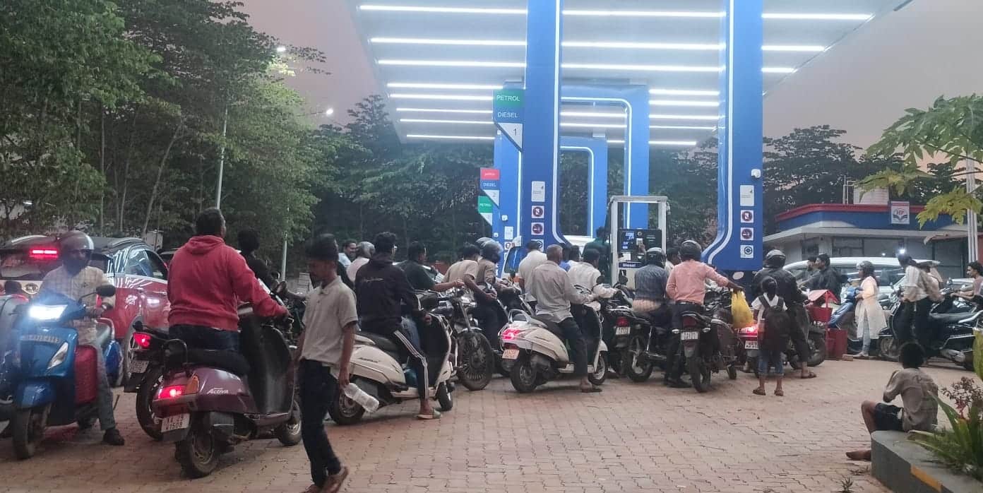 ಅಮೆರಿಕ-ಇರಾನ್ ಮಧ್ಯೆ ನಡೆದಿರುವ ಯುದ್ಧದಿಂದಾಗಿ ಸಿಲಿಂಡರ್ ಸಮಸ್ಯೆ ಶುರುವಾಗಿ, ಇನ್ನೇನು ಸರಿ ಹೋಯ್ತು ಎನ್ನುವಷ್ಟರಲ್ಲಿ ಧಾರವಾಡದಲ್ಲಿ ತೈಲಕ್ಕಾಗಿ ಸವಾರರು ಬಂಕ್ಗಳಿಗೆ ಮುಗಿ ಬಿದ್ದಿದ್ದಾರೆ.ಯುದ್ಧದಿಂದಾಗಿ ಪೆಟ್ರೋಲ್, ಡೀಸೆಲ್ ಬೆಲೆಯಲ್ಲಿ ಏರಿಕೆ ಆಗಲಿದೆ, ಬೇಕಾದಷ್ಟು ಪೆಟ್ರೋಲ್, ಡೀಸೆಲ್ ಸಿಗುವುದು ಕಷ್ಟ ಎಂಬ ಸುದ್ದಿ ಹರಡಿದ್ದು, ಈ ಹಿನ್ನೆಲೆಯಲ್ಲಿ ಬೈಕ್, ಕಾರು ಹಾಗೂ ವಾಣಿಜ್ಯ ಬಳಕೆಯ ವಾಹನಗಳ ಮಾಲೀಕರು ನಗರದ ಎಲ್ಲ ಪೆಟ್ರೋಲ್ ಬಂಕ್ಗಳ ಎದುರು ಸಾಲು ಹಚ್ಚಿ ಪೆಟ್ರೋಲ್ ಮತ್ತು ಡೀಸೆಲ್ ತುಂಬಿಸಿಕೊಳ್ಳುತ್ತಿದ್ದಾರೆ.