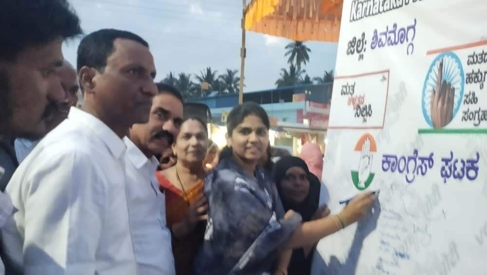 14 ಮತ ಕದ್ದುಕೊಂಡು ಗದ್ದಿಗೆ ಏರಿದವರು ಪ್ರಜಾಪ್ರಭುತ್ವಕ್ಕೆ ಧಕ್ಕೆ ತಂದಿದ್ದಾರೆ. ಜನರ ಹಕ್ಕು ಕದ್ದುಕೊಂಡು ಕುರ್ಚಿಯಲ್ಲಿ ಕೂತವರೇ ನಿಮ್ಮ ದಿನಗಳು ಎಣಿಕೆಯಲ್ಲಿವೆ ಎಂದು ಜಿಲ್ಲಾ ಮಹಿಳಾ ಕಾಂಗ್ರೆಸ್ ಅದ್ಯಕ್ಷೆ ಶ್ವೇತಾ ಬಂಡಿ ತೀವ್ರವಾಗಿ ಕೇಂದ್ರದ ಬಿಜೆಪಿ ಸರ್ಕಾರವನ್ನು ತರಾಟೆಗೆ ತಗೆದುಕೊಂಡರು.ಈ ಆಭಿಯಾನವನ್ನು ಶಾಸಕ ಗೋಪಾಲಕೃಷ್ಣ ಬೇಳೂರು ಇವರ ಮಾರ್ಗದರ್ಶದಂತೆ ಸೋಮವಾರ ಸಂಜೆ ರಿಪ್ಪನ್ಪೇಟೆಯ ವಿನಾಯಕ ಸರ್ಕಲ್ ನಲ್ಲಿ ನಡೆದ ``ವೋಟ್ ಚೋರ್ ಗದ್ದಿ ಚೋಡ್’’ ಸಹಿ ಸಂಗ್ರಹ ಅಭಿಯಾನದಲ್ಲಿ ಮಾತನಾಡಿ, ಜನರ ಪವಿತ್ರ ಮತವನ್ನು ಕಳವು ಮಾಡಿಕೊಂಡು ಅಧಿಕಾರದಲ್ಲಿರುವುದು ಪ್ರಜಾಪ್ರಭುತ್ವದ ಮೇಲಿನ ದೊಡ್ಡ ಅಪರಾಧ ಈ ಕಳಂಕದ ವಿರುದ್ದ ಕಾಂಗ್ರೆಸ್ ಪಕ್ಷ ಜನಶಕ್ತಿ ಬಳಸಿ ಹೋರಾಟ ಅರಂಭಿಸಿದೆ. ಮತದ ಗೌರವ ಕಾಪಾಡುವ ಹೋರಾಟದಲ್ಲಿ ಪ್ರತಿಯೊಬ್ಬ ಪ್ರಜೆಯೂ ಕೈಜೋಡಿಸಬೇಕು ಎಂದ ಅವರು ಪ್ರಜಾಪ್ರಭುತ್ವ ಉಳಿಸುವ ಹೋರಾಟ ಕಾಂಗ್ರೆಸ್ ಕರ್ತವ್ಯವಲ್ಲ ಜನರ ಶಪಥ ಎಂದು ಘೋಷಿಸಿದರು.