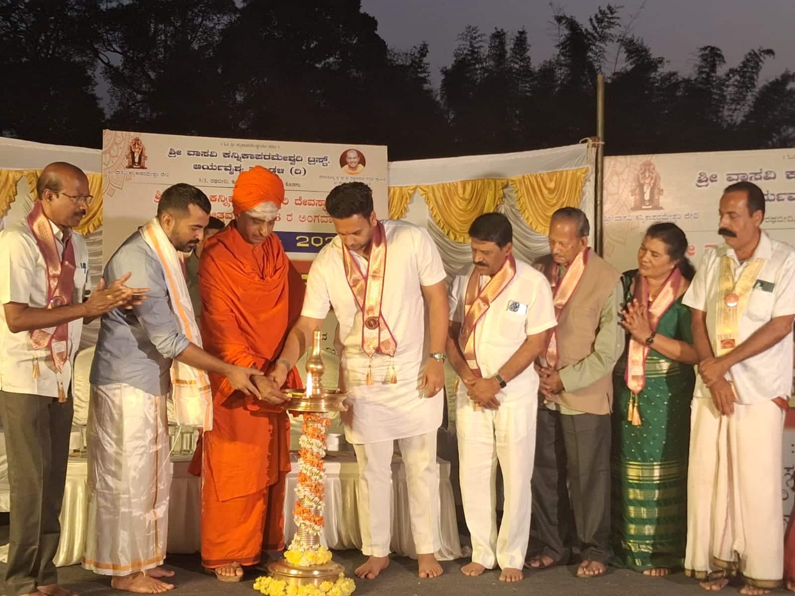 ಕಾರ್ಯಕ್ರಮಕ್ಕೂ ಮುನ್ನ ಸಮಸ್ತ ಮಹಿಳಾ ಭಜನಾ ಮಂಡಳಿಯಿಂದ ಭಜನಾ ಕಾರ್ಯಕ್ರಮ ವಂದೇ ಮಾತರಂ ರಾಷ್ಟ್ರೀಯ ಗೀತೆಯ 150ನೇ ವರ್ಷದ ಅಂಗವಾಗಿ ಗೀತೆ ಹಾಡಲಾಯಿತು.ಆರ್ಯವೈಶ್ಯ ಸಮಾಜದ ಪ್ರಮುಖರಾದ ವಿ.ಎನ್.ವಸಂತಕುಮಾರ್, ಉದಯಕುಮಾರ್, ಬಿ ಎಲ್ ಅಶೋಕ್ ಕುಮಾರ್, ಬಿ ಆರ್ ನಟರಾಜ್, ಕೆ.ಜೆ.ಸತೀಶ್, ವೈಶಾಕ್, ಪ್ರಶಾಂತ್, ಕೆ. ಪ್ರವೀಣ್, ಅಂಜನ್, ಕಾವೇರಿ ಮಹಾ ಆರತಿ ಬಳಗದ ಸಂಚಾಲಕಿ ವನಿತಾ ಚಂದ್ರಮೋಹನ್, ಆರ್ಯವೈಶ್ಯ ಮಹಿಳಾ ಮಂಡಳಿ ಅಧ್ಯಕ್ಷೆ ವಾಣಿ ಮಹೇಶ್, ತಾಲೂಕು ಗ್ಯಾರಂಟಿ ಸಮಿತಿ ಅಧ್ಯಕ್ಷ ವಿ.ಪಿ.ಶಶಿಧರ್, ಕೂಡ ಅಧ್ಯಕ್ಷ ಪ್ರಮೋದ್, ಜಿಪಂ ಮಾಜಿ ಅಧ್ಯಕ್ಷೆ ಕೆ.ಪಿ.ಚಂದ್ರಕಲಾ, ಮಾಜಿ ಸದಸ್ಯ ಬಿ.ಬಿ.ಭಾರತೀಶ್, ಹಿರಿಯ ಸಹಕಾರಿ ಎಂ.ಎನ್.ಕುಮಾರಪ್ಪ, ಪತ್ರಕರ್ತೆ ಸವಿತಾ ರೈ, ಧರ್ಮಸ್ಥಳ ಗ್ರಾಮಾಭಿವೃದ್ದಿ ಯೋಜನೆಯ ಕೊಡಗು ನಿರ್ದೇಶಕಿ ಲೀಲಾವತಿ, ಕಾವೇರಿ ಮಹಾ ಆರತಿ ಬಳಗದ ಪ್ರಮುಖರಾದ ಮಂಡೆಪಂಡ ಬೋಸ್ ಮೊಣ್ಣಪ್ಪ, ಧರಣಿ ಸೋಮಯ್ಯ, ಮತ್ತು ವಾಸವಿ ಸಪ್ತಾಹ ಸಮಿತಿ, ವಿವಿಧ ಸಂಘಟನೆಗಳ ಪ್ರಮುಖರು, ಪದಾಧಿಕಾರಿಗಳು ಇದ್ದರು.