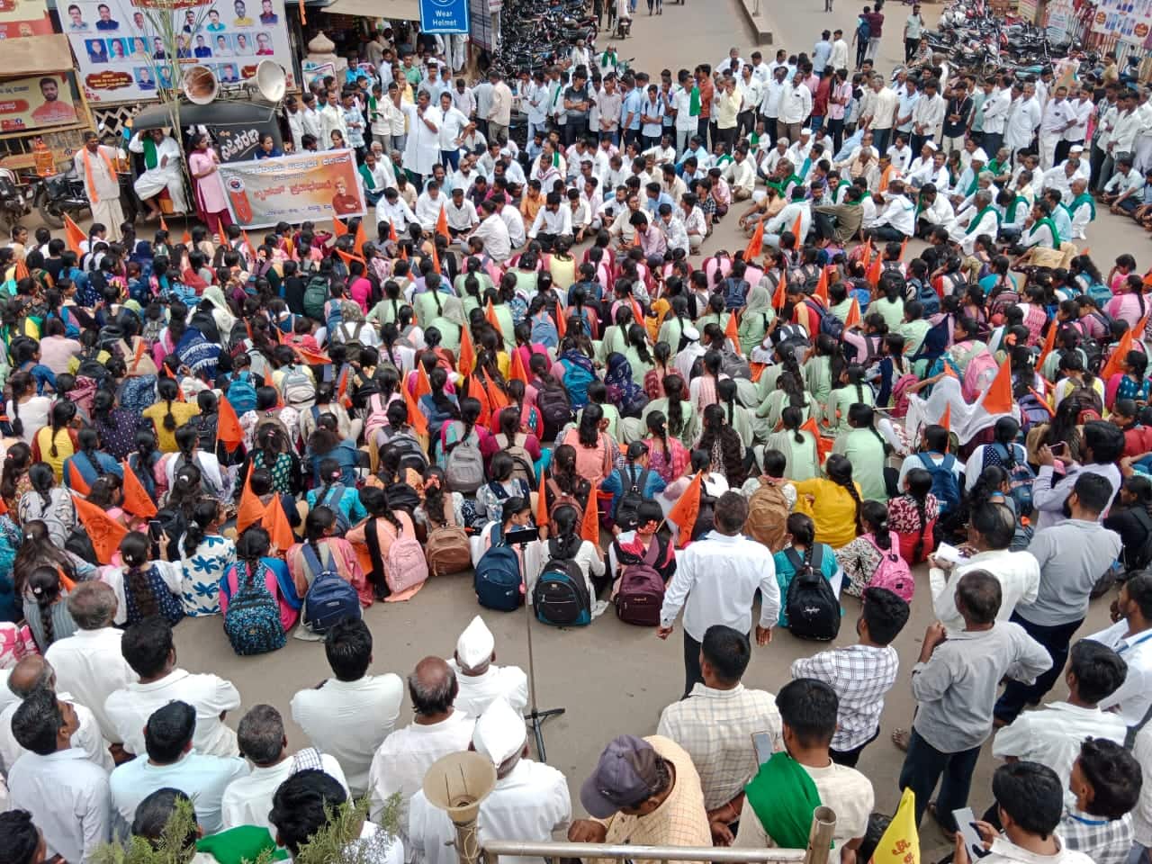 ಕಬ್ಬಿನ ಬೆಳೆಗೆ ಪ್ರತಿ ಟನ್ಗೆ ₹3500 ಹಾಗೂ ಬಾಕಿ ಹಣ ಬಿಡುಗಡೆ ಗೊಳಿಸುವಂತೆ ಆಗ್ರಹಿಸಿ ರೈತರು ನಡೆಸುತ್ತಿರುವ ಪ್ರತಿಭಟನೆ 6ನೇ ದಿನಕ್ಕೆ ಕಾಲಿಟ್ಟಿದ್ದು, ನಗರದ ಎ.ಜಿ. ದೇಸಾಯಿ ವೃತ್ತದಲ್ಲಿ ಗುರುವಾರ ಅಖಿಲ ಭಾರತೀಯ ವಿದ್ಯಾರ್ಥಿ ಪರಿಷತ್ ಹಾಗೂ ಕರ್ನಾಟಕ ರಕ್ಷಣಾ ವೇದಿಕೆಯ, ಆಟೋರಿಕ್ಷಾ ಚಾಲಕರು, ಮಾಲೀಕರ ಸಂಘದ ಸಹಯೋಗದಲ್ಲಿ ರಸ್ತೆ ತಡೆ ನಡೆಸಿ ಪ್ರತಿಭಟನೆ ನಡೆಸಿದರು.