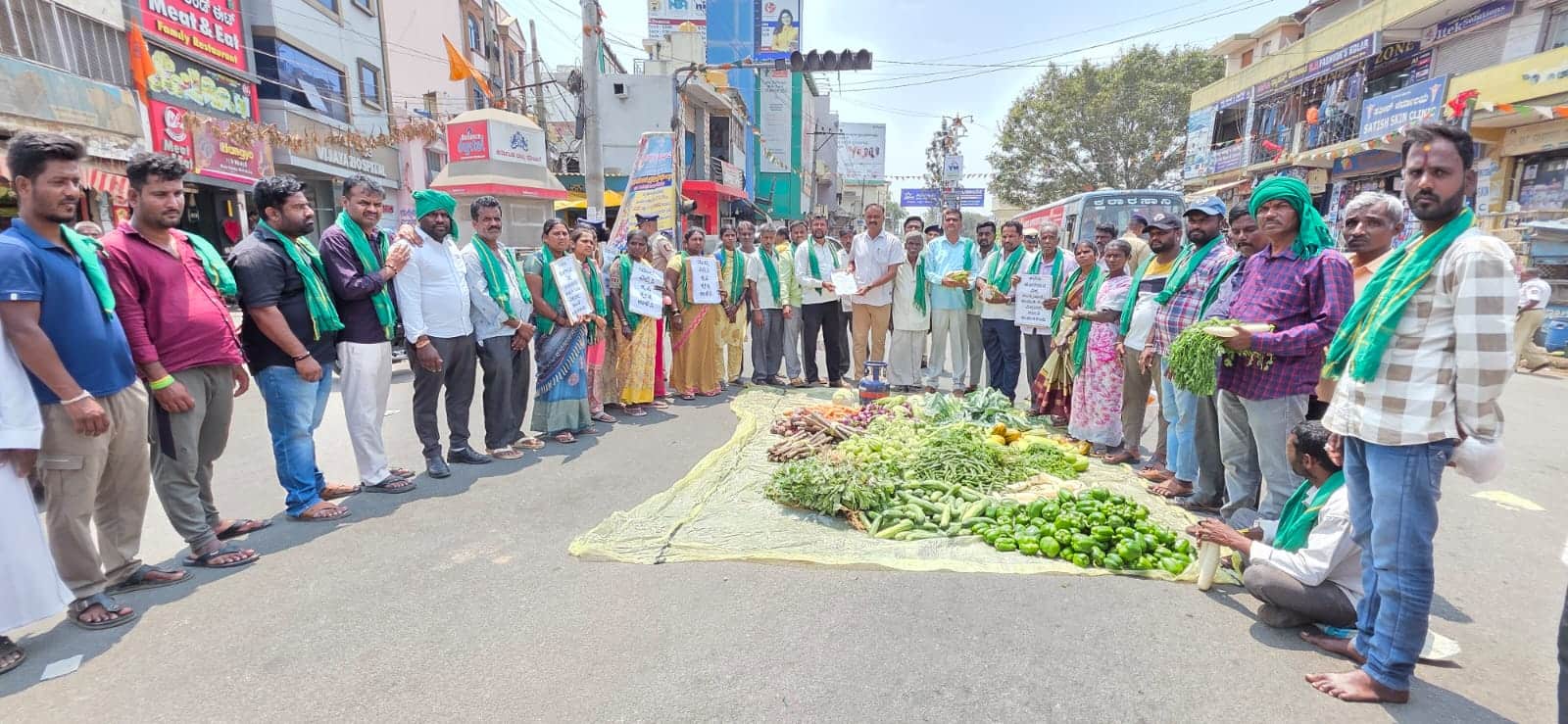 ಕನ್ನಡಪ್ರಭ ವಾರ್ತೆ ಕೋಲಾರಮಧ್ಯ ಪ್ರಾಚ್ಯ ಯುದ್ಧದಿಂದ ಸೃಷ್ಠಿಯಾಗಿರುವ ಸಿಲಿಂಡರ್ ಸಮಸ್ಯೆ ಹಾಗೂ ಏರಿಕೆಯಾಗಿರುವ ಕೃಷಿ ಪರಿಕರಣಗಳ ಬೆಲೆ ನಿಯಂತ್ರಣಕ್ಕೆ ವಿಶೇಷ ತಂಡ ರಚನೆ ಮಾಡಬೇಕೆಂದು ರೈತರ ಸಂಘದಿಂದ ಪಲ್ಲವಿ ವೃತ್ತದಲ್ಲಿ ಕಟ್ಟಿಗೆ ಖಾಲಿ ಸಿಲಿಂಡರ್ ತರಕಾರಿ ಸಮೇತ ಹೋರಾಟ ಮಾಡಿ ಕಂದಾಯ ಇಲಾಖೆಯ ಆರ್ಐ ರಾಜುರಿಗೆ ಮುಖಾಂತರ ಪ್ರಧಾನ ಮಂತ್ರಿಗಳಿಗೆ ಮನವಿ ಸಲ್ಲಿಸಿದರು.ಯುದ್ಧದ ಆಟ-ಚಟ ಮನುಕುಲಕ್ಕೆ ನರಳಾಟ ದಂಧೆ ಕೋರರಿಗೆ ಹಣ ಮಾಡುವ ಕಳ್ಳಾಟ ಬೆಳೆದ ಬೆಳೆಗೆ ಬೆಲೆ ಇಲ್ಲದೇ ಬೀದಿಗೆ ಬಿಳುತ್ತಿರುವ ರೈತರಿಗೆ ಸ್ವಾಭಿಮಾನದ ಹೋರಾಟವಾಗಿದೆ. ಶ್ರೀಮಂತ ಜಗತ್ತಿಗೆಲ್ಲಾ ನೀತಿ ಪಾಠಹೇಳುವ ಮಾನವಿತ್ಯೆ ಇಲ್ಲದ ರಾಷ್ಟ್ರಗಳ ಯುದ್ದ ಇಡೀ ದೇಶವೇ ಅಲ್ಲೋಲ್ಲ-ಕಲೋಲ್ಲವಾಗುತ್ತಿದೆ. ಸಮಸ್ಯೆಯನ್ನು ಗಂಭೀರವಾಗಿ ಪರಿಗಣಿಸಿ ಬಗೆಹರಿಸಬೇಕಾದ ವಿಶ್ವ ಸಂಸ್ಥೆ ನಾಪತ್ತೆಯಾಗಿರುವುದು ದುರಷ್ಠಕರ ವಿಚಾರವಾಗಿದೆ ಎಂದು ರೈತ ಸಂಘದ ರಾಜ್ಯ ಉಪಾಧ್ಯಕ್ಷ ಕೆ.ನಾರಾಯಣಗೌಡ ಅವ್ಯವಸ್ಥೆ ವಿರುದ್ಧ ಆಕ್ರೋಶ ವ್ಯಕ್ತಪಡಿಸಿದರು. ಯಾವುದೇ ತಪ್ಪು ಮಾಡದ ಅಮಾಯಕರು ಇಂದು ಬಲಿತ ರಾಷ್ಟ್ರಗಳು ಪ್ರತಿಷ್ಠೆಗಾಗಿ ಯುದ್ದಗಳನ್ನು ಸೃಷ್ಠಿಸಿಕೊಂಡು ಅಶಾಂತಿ ಸೃಷ್ಠಿಮಾಡಿ ಜೀವಗಳನ್ನು ಬಲಿಕೊಡುತ್ತಿರುವ ಜೊತೆಗೆ ಯುದ್ಧದ ನೆಪದಲ್ಲಿ ಕೃಷಿ ಕ್ಷೇತ್ರವನ್ನು ನಾಶ ಮಾಡಿ ಆಹಾರ ಅಭದ್ರತೆ ಸೃಷ್ಠಿಸುತ್ತಿರುವುದು ಪ್ರಜಾಪ್ರಭುತ್ವದ ಕಗ್ಗೊಲೆ ಅಸಮಾಧಾನ ವ್ಯಕ್ತಪಡಿಸಿದರು. ಎಲ್.ಪಿ.ಜಿ ಕೊರತೆಯಿಂದ ಎಲ್ಲಾ ಪ್ರೀತಿಯ ಉದ್ಯಮಗಳಿಗೆ ಹೊಡೆತ ಬೀಳುವ ಜೊತೆಗ ಅತಿ ಹೆಚ್ಚು ಹೊಡೆತ ಬಿದ್ದಿರುವುದು ರೈತರಿಗೆ ಲಕ್ಷಾಂತರ ರುಪಾಯಿ ಬಂಡವಾಳ ಹಾಕಿ ಬೆಳೆದಿರುವ ಸಾವಿರಾರು ಹೆಕ್ಟೇರ್ ಕೃಷಿ ಜಮೀನಲ್ಲಿನ ವಿವಿಧ ವಾಣಿಜ್ಯ ಬೆಳೆಗಳಾದ ಟೊಮೆಟೋ, ಕ್ಯಾಪ್ಸಿಕಾಮ್, ಸೌತೆಕಾಯಿ, ಅಲೂಗಡ್ಡೆ ಬೀನ್ಸ್ ಮತ್ತು ಇತರ ಬೆಳೆಗಳನ್ನು ಮಾರುಕಟ್ಟೆಗೆ ತಂದರೆ ಅಲ್ಲಿ ಹರಾಜುನಲ್ಲಿ ಭಾಗವಹಿಸುವ ವ್ಯಾಪಾರಸ್ಥರು ಇಲ್ಲದಂತಾಗಿದೆ. ಸಿಲಿಂಡರ್ ಸಮಸ್ಯೆಯಿಂದ ಹೋಟೆಲ್ ಉದ್ಯಮಕ್ಕೆ ಹೊಡೆತ ಬೀಳುವ ಜೊತೆಗೆ ತರಕಾರಿ ಬೆಳೆದ ರೈತನು ಬೀದಿಗೆ ಬಿದ್ದಿರುವ ಜೊತೆಗೆ ಹಾಕಿದ ಬಂಡವಾಳ ಕೈಗೆ ಸಿಗದೆ ತೋಟದಲ್ಲಿಯೇ ಬೆಳೆ ನಷ್ಟವಾಗುತ್ತಿದ್ದು ಸಮಸ್ಯೆಯನ್ನು ಗಂಭೀರವಾಗಿ ಪರಿಗಣಿಸಬೇಕಾದ ಸರ್ಕಾರ ಸಿಲಿಂಡರ್ ಹೆಸರಿನಲ್ಲಿ ಆರೋಪ ಪ್ರತ್ಯಾರೋಪ ಮಾಡಿಕೊಂಡು ಬಡ ರೈತ ಕೂಲಿ ಕಾರ್ಮಿಕರ ಜೀವನ ಚೆಲ್ಲಾಟ ವಾಡುತ್ತಿದ್ದಾರೆಂದು ಕಿಡಿಕಾರಿದರು.ಪ್ರತಿಭಟನೆಯಲ್ಲಿ ಜಿಲ್ಲಾ ಕಾರ್ಯಾಧ್ಯಕ್ಷ ವಕ್ಕಲೇರಿ ಹನುಮಯ್ಯ, ಜಿಲ್ಲಾಧ್ಯಕ್ಷ ಈಕಂಬಳ್ಳಿ ಮಂಜುನಾಥ ಕಮ್ಮದಟ್ಟಿ ಚಲಪತಿ ಮಂಜುನಾಥ. ಮಂಗಸಂದ್ರ ತೆರ್ನಹಳ್ಳಿ ಅಂಜಿನಪ್ಪ ತಿಮ್ಮಣ್ಣ ಕುವಣ್ಣ, ಗೋವಿಂದಪ್ಪ, ಸುಪ್ರಿಂ ಚಲ ಪುತ್ತೇರಿ ರಾಜು ಗಿರೀಶ್ ಚಂದ್ರಪ್ಪ ಯಲ್ಲಣ್ಣ ವೆಂಕಟೇಶ ಶೈಲಜ, ಪವಿತ್ರ ರತ್ನಮ್ಮ ನಯನ ಗೌರಮ್ಮ ಪದ್ಮಮ್ಮ ಮುನಿಚೌಡಮ್ಮ ಇದ್ದರು.