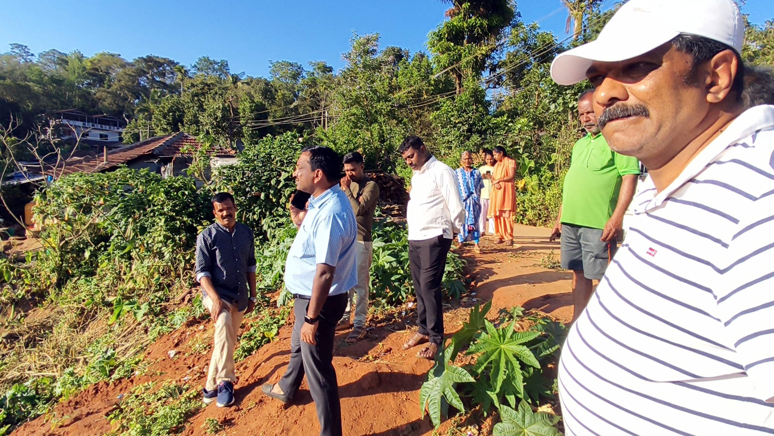 ಬರೆ ಕುಸಿಯುತ್ತಿದೆ ಎಂಬ ಗ್ರಾಮಸ್ಥರ ದೂರಿನ ಮೇರೆಗೆ ತಹಸೀಲ್ದಾರ್ ಕೃಷ್ಣಮೂರ್ತಿ ಸ್ಥಳಕ್ಕೆ ಭೇಟಿ ನೀಡಿ ಪರಿಶೀಲಿಸಿದರು.