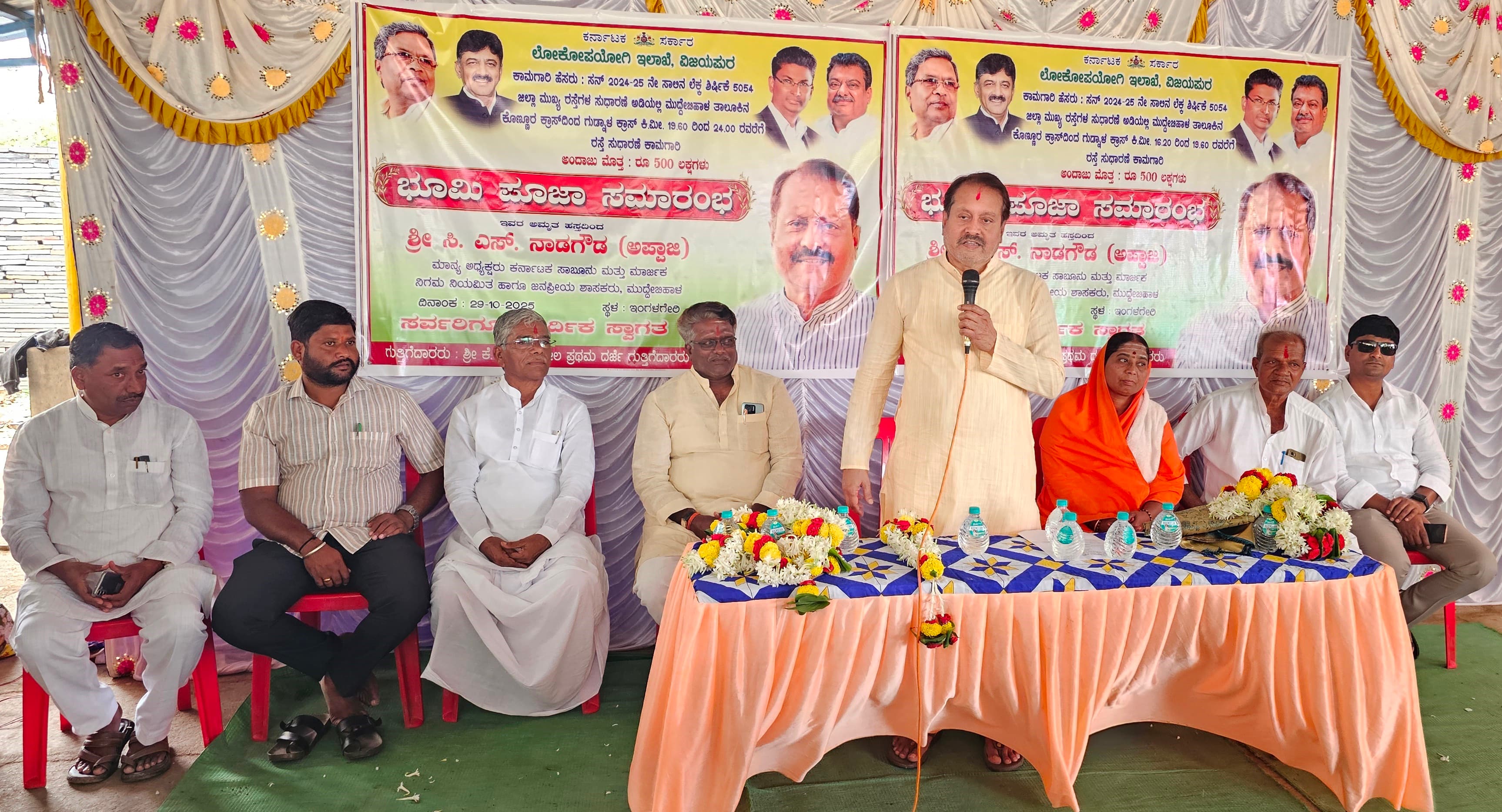 ನಮ್ಮ ಕ್ಷೇತ್ರದಲ್ಲಿ ಸುಮಾರು ₹ 700 ಕೋಟಿ ವೆಚ್ಚದಲ್ಲಿ ರಸ್ತೆ ನಿರ್ಮಾಣ, ಶಾಲಾ ಕಟ್ಟಡ, ನೀರಾವರಿ ಸೇರಿ ಅನೇಕ ಯೋಜನೆಗಳ ಕಾಮಗಾರಿಗಳನ್ನು ಕೈಗೆತ್ತಿಕೊಳ್ಳಲಾಗಿದೆ. ಮುಂಬರುವ ದಿನಗಳಲ್ಲಿ ಇನ್ನಷ್ಟು ವಿಶೇಷ ಅನುದಾನ ಬಿಡುಗಡೆಯಾಗಲಿದೆ. ಇದು ಅಭಿವೃದ್ಧಿ ಅಲ್ಲವೇ ಎಂದು ಶಾಸಕ ಹಾಗೂ ಕರ್ನಾಟಕ ರಾಜ್ಯ ಸಾಬೂನು ಮತ್ತು ಮಾರ್ಜಕ ನಿಗಮದ ಅಧ್ಯಕ್ಷ ಸಿ.ಎಸ್.ನಾಡಗೌಡ(ಅಪ್ಪಾಜಿ) ಪ್ರಶ್ನಿಸಿದರು.ತಾಲೂಕಿನ ಇಂಗಳಗೇರಿ ಗ್ರಾಮದಲ್ಲಿ ಲೋಕೋಪಯೋಗಿ ಇಲಾಖೆಯಿಂದ ₹ 10 ಕೋಟಿ ವೆಚ್ಚದಲ್ಲಿ ಇಂಗಳಗೇರಿಯಿಂದ ಬಳವಾಟ ಹಾಗೂ ಇಂಗಳಗೇರಿಂದ ಗುಡ್ನಾಳ ಕ್ರಾಸ್ವರೆಗಿನ ಡಾಂಬರ್ ರಸ್ತೆ ಕಾಮಗಾರಿಗೆ ಬುಧವಾರ ಭೂಮಿಪೂಜೆ ನೆರವೇರಿಸಿ ಮಾತನಾಡಿದರು. ಈಗಾಗಲೇ ಮತಕ್ಷೇತ್ರದಲ್ಲಿ ಉಕ್ಕಲಿ, ದಿಂಡವಾರ, ಸಾಸನೂರ, ಬಳಗಾನೂರ, ಬಾವೂರ, ಮೂಕಿಹಾಳ, ನಾಲತವಾಡ ಮಾರ್ಗದ ಕೆಸಿಪ್ ಯೋಜನೆಯಡಿಯಲ್ಲಿ ಸುಮಾರು ₹ 770 ಕೋಟಿಯಲ್ಲಿ 177ನೇ ರಾಜ್ಯ ಹೆದ್ದಾರಿ ರಸ್ತೆ ಕಾಮಗಾರಿ ಪ್ರಾರಂಭಿಸಲಾಗುತ್ತಿದೆ. ಈ ಮೊದಲು ₹ 35 ಕೋಟಿ ವೆಚ್ಚದಲ್ಲಿ ನಾಲುತವಾಡದಿಂದ ತಂಗಡಗಿ ರಸ್ತೆ ಕಾಮಗಾರಿ ನಡೆಸಲಾಗುತ್ತಿದೆ. ಜತೆಗೆ ಮುಖ್ಯಮಂತ್ರಿಗಳ ವಿಶೇಷ ಅನುದಾನದಡಿಯಲ್ಲಿ ₹ 17.5 ಕೋಟಿಯಲ್ಲಿ ಲೋಕೋಪಯೋಗಿ ಇಲಾಖೆಯಿಂದ ಜಿಲ್ಲಾ ಮುಖ್ಯ ರಸ್ತೆಗಳ ಅಭಿವೃದ್ಧಿ ಕಾಮಗಾರಿ ಸೇರಿ ಶಾಲಾ ಕಟ್ಟಡಗಳ ದುರಸ್ತಿ, ಹೊಸ ಕಟ್ಟಡಗಳ ನಿರ್ಮಾಣ, ಕೆರೆ ತುಂಬುವ ಯೋಜನೆ, ನೀರಾವರಿ ಯೋಜನೆ ಅನೇಕ ಯೋಜನೆಗಳನ್ನು ಕೈಗೊಳ್ಳಲಾಗಿದೆ ಎಂದು ಮಾಹಿತಿ ನೀಡಿದರು.