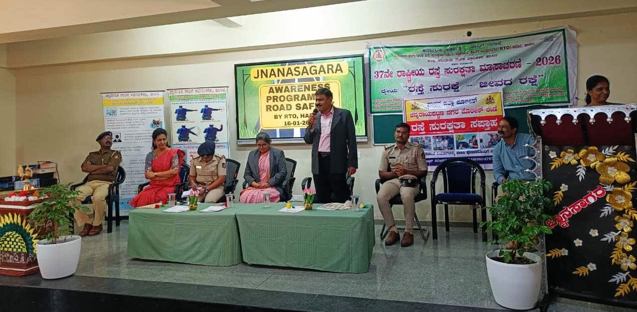 ೩೭ನೇ ರಸ್ತೆ ಸುರಕ್ಷತಾ ಮಾಸಾಚರಣೆ ಅಂಗವಾಗಿ ಪ್ರಾದೇಶಿಕ ಸಾರಿಗೆ ಇಲಾಖೆ ಮತ್ತು ಜ್ಞಾನಸಾಗರ ಇಂಟರ್ನ್ಯಾಷನಲ್ ಪಬ್ಲಿಕ್ ಸ್ಕೂಲ್ ಸಂಯುಕ್ತ ಆಶ್ರಯದಲ್ಲಿ ರಸ್ತೆ ಸುರಕ್ಷತಾ ಮಾಸಾಚರಣೆಯನ್ನು ಆಚರಿಸಲಾಯಿತು.ಕಾರ್ಯಕ್ರಮದಲ್ಲಿ ಹಾಸನದ ಪ್ರಾದೇಶಿಕ ಸಾರಿಗೆ ಅಧಿಕಾರಿಗಳಾದ ಜೆ. ಪಿ. ಪ್ರಕಾಶ್ರವರು ಮಾತನಾಡಿ ರಸ್ತೆ ನಿಯಮಗಳು ಸಾರ್ವಜನಿಕರ ಹಿತದೃಷ್ಟಿಯಿಂದ ರೂಪಿತವಾಗಿರುವ ನಿಯಮಗಳಾಗಿವೆ, ರಸ್ತೆ ನಿಯಮಗಳನ್ನು ಪಾಲಿಸುವ ಮೂಲಕ ಬಹುತೇಕ ರಸ್ತೆ ಅಪಘಾತಗಳನ್ನು ತಡೆಗಟ್ಟಬಹುದು. ಈ ನಿಟ್ಟಿನಲ್ಲಿ ಇಂತಹ ಜಾಗೃತಿ ಕಾರ್ಯಕ್ರಮಗಳು ಅವಶ್ಯ ಎಂದರು. ಹಿರಿಯ ಸಿವಿಲ್ ನ್ಯಾಯಾಧೀಶರಾದ ಅರುಣಕುಮಾರಿಯವರು ಮಾತನಾಡಿ ಕಾನೂನಿನ ಚೌಕಟ್ಟಿನಲ್ಲಿ ರಸ್ತೆ ನಿಯಮದ ಉಲ್ಲಂಘನೆಗೆ ಇರುವ ಶಿಕ್ಷೆ ಹಾಗೂ ದಂಡಗಳ ಬಗ್ಗೆ ಮಾಹಿತಿ ನೀಡಿದರು. ತಾಲೂಕಿನಲ್ಲಿ ಕಾನೂನು ಸೇವಾ ಸಮಿತಿಯು ರಚನೆಯಾಗಿದ್ದು, ಈ ಸಮಿತಿಯ ಮೂಲಕ ಕೆಲವು ನಿಬಂಧನೆಗಳಿಗೊಳಪಟ್ಟಂತೆ ಸಾರ್ವಜನಿಕರು ಉಚಿತ ಕಾನೂನು ಸೇವೆ ಪಡೆದುಕೊಳ್ಳಬಹುದಾಗಿದೆ ಎಂದರು. ಮೋಟಾರು ವಾಹನ ನಿರೀಕ್ಷಕರಾದ ಆಶಾ ಎನ್. ಆರ್. ಅವರು ಮಾತನಾಡಿ ರಸ್ತೆ ಸಾರಿಗೆಯ ನಿಯಮಗಳು, ಎಚ್ಚರಿಕೆಯ ಚಿಹ್ನೆಗಳು, ಪ್ರತಿಯೊಬ್ಬ ವಾಹನ ಚಾಲಕರು ವಹಿಸಬೇಕಾದ ಎಚ್ಚರಿಕೆಗಳು, ಹೊಂದಿರಬೇಕಾದ ದಾಖಲೆಗಳ ಮಾಹಿತಿ ನೀಡಿದರು.
