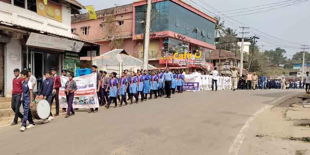 ಮಾರುಕಟ್ಟೆ ಸಮೀಪದಿಂದ ಪೇಟೆಯ ಮುಖ್ಯ ಬೀದಿಯಲ್ಲಿ ರಸ್ತೆ ಸುರಕ್ಷತಾ ಕಾನೂನಿನ ಬಗ್ಗೆ ವಿವಿಧ ಘೋಷ ವಾಕ್ಯಗಳೊಂದಿಗೆ ಡ್ರಂ ಬಾರಿಸಿ ಸಾರ್ವಜನಿಕರಿಗೆ ಅರಿವು ಮೂಡಿಸಲಾಯಿತು. ಶಿಕ್ಷಕರು, ವಿದ್ಯಾರ್ಥಿಗಳು, ಪೊಲೀಸ್ ಸಿಬ್ಬಂದಿ ಪಾಲ್ಗೊಂಡಿದ್ದರು.