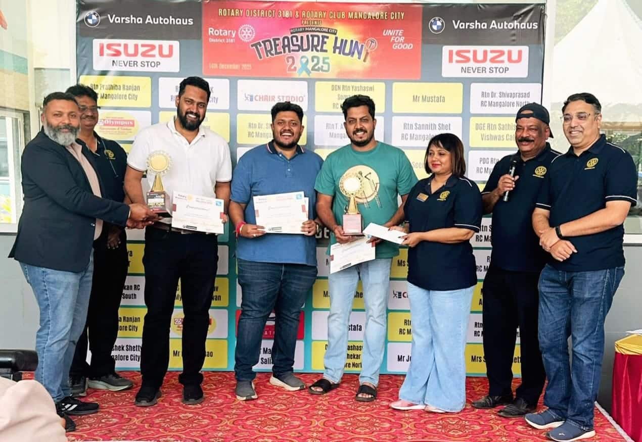ಮಂಗಳೂರು: ರೋಟರಿ ಅಂತಾರಾಷ್ಟ್ರೀಯ ಜಿಲ್ಲೆ 3181ರ ಆಡಳಿತ ಸಮಿತಿ ಮತ್ತು ರೋಟರಿ ಕ್ಲಬ್ ಮಂಗಳೂರು ಸಿಟಿ ಸಂಸ್ಥೆ ಜಂಟಿ ಆಶ್ರಯದಲ್ಲಿ “ರೋಟರಿ ನಿಧಿ ಶೋಧ ಸ್ಪರ್ಧಾಕೂಟ” ನಗರದ ಪಡೀಲ್ನಲ್ಲಿರುವ ವರ್ಷಾ ಹೌಸ್ ಮಳಿಗೆಯ ಆವರಣದಲ್ಲಿ ಭಾನುವಾರ ನಡೆಯಿತು.ರೋಟರಿ ಅಂತಾರಾಷ್ಟ್ರೀಯ ಜಿಲ್ಲೆ 3181ರ ಚುನಾಯಿತ ಗವರ್ನರ್ ಸತೀಶ್ ಬೋಳಾರ್ ಹಸಿರು ನಿಶಾನೆ ತೋರಿಸಿ ಚಾಲನೆ ನೀಡಿದರು. ಸ್ಪರ್ಧಾಕೂಟದಲ್ಲಿ ಸುಮಾರು 31 ಕಾರುಗಳಲ್ಲಿ 120 ಸ್ಪರ್ಧಾಳುಗಳು ಭಾಗವಹಿಸಿದ್ದು, 2 ಗಂಟೆ ಅವಧಿಯಲ್ಲಿ 17 ಕಿ.ಮೀ. ಪ್ರಯಾಣ ಬೆಳೆಸಿ ನಿಧಿ ಶೋಧದಲ್ಲಿ ನಿರತರಾದರು.