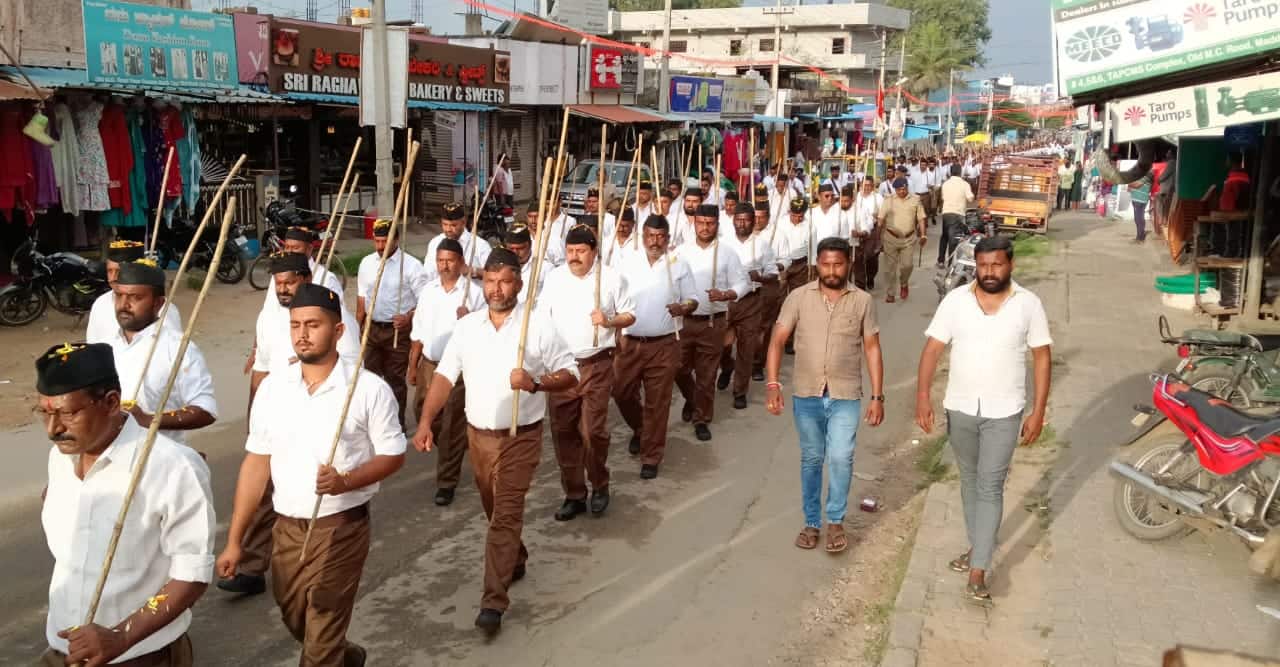 ರಾಷ್ಟ್ರೀಯ ಸ್ವಯಂಸೇವಕ ಸಂಘದ ಶತಮಾನೋತ್ಸವ ಹಾಗೂ ವಿಜಯದಶಮಿ ಪಥಸಂಚಲನ ಪಟ್ಟಣದಲ್ಲಿ ಶುಕ್ರವಾರ ಸಡಗರ ಸಂಭ್ರಮದಿಂದ ನೆರವೇರಿತು. ಭಾರತ್ ಮಾತಾ ಕಿ ಜೈ ಎಂಬ ಘೋಷ ವಾಕ್ಯದೊಂದಿಗೆ ನೂರಾರು ಸ್ವಯಂಸೇವಕರು ಗಣೇವೇಷದೊಂದಿಗೆ ಪಾಲ್ಗೊಳ್ಳುವ ಮೂಲಕ ದೇಶಾಭಿಮಾನ ಮೆರೆದರು.ರಾಷ್ಟ್ರೀಯ ಸ್ವಯಂ ಸೇವಕ ಸಂಘ ಆಯೋಜಿಸಿದ್ದ ಶತಾಬ್ಧಿ ಪಥಸಂಚಲನ ಪಟ್ಟಣದ ಪುರಾಣ ಪ್ರಸಿದ್ಧ ಶ್ರೀ ಉಗ್ರ ನರಸಿಂಹ ಸ್ವಾಮಿ ದೇವಾಲಯದ ಆವರಣದಿಂದ ತೆರೆದ ಜೀಪಿನಲ್ಲಿ ಭಗವಾಧ್ವಜದ ಮೆರವಣಿಗೆಯೊಂದಿಗೆ ಪಥಸಂಚಲನಕ್ಕೆ ಚಾಲನೆ ನೀಡಲಾಯಿತು. ನಂತರ ಕೋಟೆ ಬೀದಿ, ಪೇಟೆ ಬೀದಿ , ಲೀಲಾವತಿ ಬಡಾವಣೆ ಮೂಲಕ ತಾಲೂಕು ಕ್ರೀಡಾಂಗಣದವರೆಗೆ ನಡೆದ ಪಥ ಸಂಚಲನದಲ್ಲಿ ಭಾಗವಹಿಸಿದ್ದ ಗಣವೇಷಧಾರಿಗಳಿಗೆ ರಸ್ತೆ ಇಕ್ಕೆಲಗಳಲ್ಲಿ ನೆರೆದಿದ್ದ ವರ್ತಕರು ಮತ್ತು ಸಾರ್ವಜನಿಕರು ತಮ್ಮ ಅಂಗಡಿಗಳ ಮುಂದೆ ರಂಗೋಲಿ ಬಿಡಿಸಿ ಪುಷ್ಪವೃಷ್ಟಿ ಗೈದು ಚಪ್ಪಾಳೆ ತಟ್ಟಿ ದೇಶಾಭಿಮಾನಕ್ಕೆ ಹುರಿದುಂಬಿಸಿದರು. ಪಥ ಸಂಚಲನದಲ್ಲಿ ಮನ್ಮುಲ್ ನಿರ್ದೇಶಕ ಎಸ್. ಪಿ. ಸ್ವಾಮಿ , ರಾಷ್ಟ್ರೀಯ ಸ್ವಯಂಸೇವಕ ಸಂಘದ ಶಾಮಿಯಾನ ಗುರುಸ್ವಾಮಿ, ವಕೀಲ ಪಿ.ಮಲ್ಲೇಶ್, ಸಿ.ಕೆ. ಸತೀಶ್, ಕೆ. ಟಿ.ನವೀನ , ವೀರಭದ್ರ ಸ್ವಾಮಿ, ಮಧು, ಮಧುಕುಮಾರ ಸೇರಿದಂತೆ ತಾಲೂಕಿನ ವಿವಿಧ ಗ್ರಾಮಗಳ ಸ್ವಯಂಸೇವಕರು ಪಾಲ್ಗೊಂಡಿದ್ದರು.