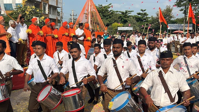 ಕನಕಪುರ: ರಾಷ್ಟ್ರೀಯ ಸ್ವಯಂ ಸೇವಕ ಸಂಘದ ಶತಮಾನೋತ್ಸವ ಹಾಗೂ ವಿಜಯದಶಮಿ ಅಂಗವಾಗಿ ನಗರದಲ್ಲಿ ಆಕರ್ಷಕ ಪಥ ಸಂಚಲನ ನಡೆಯಿತು. ನಗರದ ಕೇಸರಿ ಶಾಖೆ ಹಾಗೂ ವಿವೇಕಾನಂದ ಶಾಖೆ ಸೇರಿದಂತೆ ನಗರ ಮತ್ತು ಗ್ರಾಮಾಂತರ ಶಾಖೆಗಳಿಂದ ಆಗಮಿಸಿದ್ದ ಸಾವಿರಾರು ಗಣವೇಷಧಾರಿ ತರುಣರು ಘೋಷ್ ವಾದ್ಯಕ್ಕೆ ತಕ್ಕಂತೆ ಹೆಜ್ಜೆ ಹಾಕುತ್ತಾ ಸಾಗುತ್ತಿದ್ದು ಸಾರ್ವಜನಿಕರ ಗಮನ ಸೆಳೆಯಿತು. ಭಾಗ್ವಾಧ್ವಜ ಹಿಡಿದು ಒಂದು ತಂಡ ನಗರದ ಮಾನಸ ಶಾಲೆ ರಸ್ತೆ ಮೂಲಕ ಪೈಪ್ ಲೈನ್ ರಸ್ತೆಯಲ್ಲಿ ಸಾಗಿ ಧರ್ಮರಾಯ ಆರ್ಯನ್ ವರ್ಕ್ ಷಾಪ್ ಮೂಲಕ ಹಲಸಿನ ಮರದ ದೊಡ್ಡಿ ಮುಖಾಂತರ ಕೋಟೆ ಭಾಗದ ಮೂಲಕ ಚನ್ನಬಸಪ್ಪ ವೃತ್ತಕ್ಕೆ ಸಾಗಿತು.ಮತ್ತೊಂದು ತಂಡ ವಿವೇಕಾನಂದ ಬಡಾವಣೆ ಮೂಲಕ ಹೊರಟುಮೇಗಳ ಬೀದಿ, ಬಾಣಂತಮಾರಮ್ಮ ದೇವಾಲಯ ರಸ್ತೆ ಮೂಲಕ ಎಂ.ಜಿ ರಸ್ತೆಯಲ್ಲಿ ಸಾಗಿ ಚನ್ನಬಸಪ್ಪ ವೃತ್ತದಲ್ಲಿ ಎರಡು ತಂಡಗಳು ಒಂದೇ ಸಮಯಕ್ಕೆ ಬಂದು ಸಂಗಮವಾಗಿದ್ದು ಸಾರ್ವಜನಿಕರ ಗಮನ ಸೆಳೆಯಿತು. ಈ ವೇಳೆ ತಾಲೂಕಿನ ಪ್ರಮುಖ ಮಠಗಳ ಸ್ವಾಮೀಜಿಗಳು ಹಾಜರಿದ್ದು ಭಾಗ್ವಾಧ್ವಜಕ್ಕೆ ಪುಷ್ಪವೃಷ್ಟಿ ಸುರಿಸಿ ನಮನ ಸಲ್ಲಿಸಿದರು.