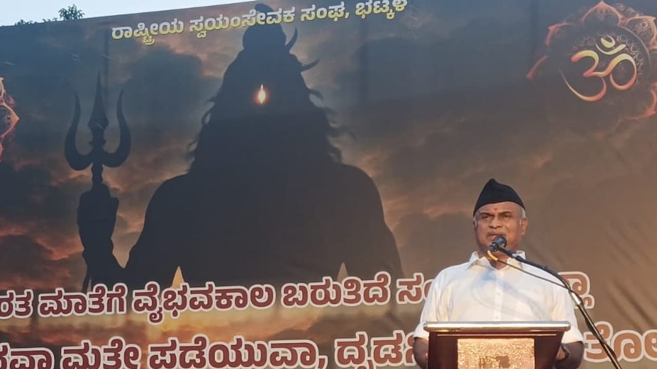 ಪಟ್ಟಣದ ಗುರು ಸುಧೀಂದ್ರ ಕಾಲೇಜು ಮೈದಾನದಲ್ಲಿ ರಾಷ್ಟ್ರೀಯ ಸ್ವಯಂ ಸೇವಕ ಸಂಘದ ಶತಾಬ್ದಿ ವರ್ಷಾಚಣೆ ಮತ್ತು ವಿಜಯ ದಶಮಿ ದಿನದ ಕಾರ್ಯಕ್ರಮದಲ್ಲಿ ಗಣವೇಷಧಾರಿ ಸ್ವಯಂ ಸೇವಕರನ್ನುದ್ದೇಶಿಸಿ ಮಾತನಾಡಿದರು. ರಾಷ್ಟ್ರೀಯ ಸ್ವಯಂ ಸೇವಕ ಸಂಘ 100 ವರ್ಷ ಪೂರೈಸಿದೆ. ಕಳೆದ ನೂರು ವರ್ಷ ಸಂಘಕ್ಕೆ ಸುಲಭವಾಗಿರಲಿಲ್ಲ. ಸಂಘದ ಬಗ್ಗೆ ನಾನಾ ರೀತಿಯ ಟೀಕೆ, ಟಿಪ್ಪಣಿಗಳು ಬಂದರೂ ಸಹ ಎದೆಗುಂದದೇ ಧೈರ್ಯದಿಂದ ಮುನ್ನೆಡೆಸುವ ಕೆಲಸ ಆಗುತ್ತಿದೆ. ಸಂಘ ನೂರು ವರ್ಷದ ಆಚರಣೆಯ ಸಂದರ್ಭದಲ್ಲಿ ಪಂಚ ಪರಿವರ್ತನೆಯಾದ ಕುಟುಂಬ, ಸಾಮರಸ್ಯ, ಪರಿಸರ, ಸ್ವಚ್ಛತೆ, ಸ್ವದೇಶಿ ಬಗ್ಗೆ ಪ್ರತಿ ಮನೆಮನೆಗೂ ತೆರಳಿ ಜಾಗೃತಿ ಮೂಡಿಸುವ ಕೆಲಸ ಮಾಡಲಿದೆ. ಪ್ರತಿಯೊಬ್ಬರೂ ದೇಶದ ಬಗ್ಗೆ ಅಭಿಮಾನ ಹೊಂದಬೇಕು. ಸುಭದ್ರ ಮತ್ತು ಸುಸ್ಥಿರ ದೇಶ ನಿರ್ಮಾಣಕ್ಕೆ ಕಟಿಬದ್ಧರಾಗಬೇಕು. ಸಮಾಜದಲ್ಲಿರುವ ಗೊಂದಲವನ್ನು ಪರಿಹರಿಸಲು ಸಂಘಟನೆ ಅಗತ್ಯವಾಗಿ ಬೇಕು ಎಂದರು.ವಕೀಲರ ಸಂಘದ ಅಧ್ಯಕ್ಷ ಈಶ್ವರ ನಾಯ್ಕ ಮುರುಡೇಶ್ವರ ಮಾತನಾಡಿ, ಸಂಘದ 100 ವರ್ಷಗಳಲ್ಲಿ ಗಣನೀಯ ಸಾಧನೆ ಮಾಡಿದೆ. ಶೈಕ್ಷಣಿ, ಸಾಮಾಜಿಕ, ಧಾರ್ಮಿಕವಾಗಿ ಸಂಘದ ಕಾರ್ಯ ಮಂಚೂಣಿಯಲ್ಲಿದ್ದು, ಸಂಘ ಮತ್ತಷ್ಟು ಬಲಿಷ್ಠವಾಗಲು ನಮ್ಮೆಲ್ಲರ ಸಹಕಾರ ಅಗತ್ಯ ಎಂದರು.ವೇದಿಕೆಯಲ್ಲಿ ಶಿರಸಿಯ ರಾಮಚಂದ್ರ ಕಾಮತ್ ಉಪಸ್ಥಿತರಿದ್ದರು. ಸಭೆಯಲ್ಲಿ ಸಾವಿರಾರು ಗಣವೇಷಧಾರಿಗಳು, ಸಂಘದ ಅಭಿಮಾನಿಗಳು, ಸಾರ್ವಜನಿಕರು ಪಾಲ್ಗೊಂಡಿದ್ದರು. ಇದಕ್ಕೂ ಪೂರ್ವದಲ್ಲಿ ಪಟ್ಟಣದ ಬೀದಿ ಬೀದಿಯಲ್ಲಿ ಗಣವೇಷಧಾರಿ ಸ್ವಯಂ ಸೇವಕರಿಂದ ಆಕರ್ಷಕ ಪಥ ಸಂಚಲನ ನಡೆಯಿತು. ಪಥ ಸಂಚಲನದಲ್ಲಿ ಚಿಕ್ಕ ಮಕ್ಕಳೂ ಪಾಲ್ಗೊಂಡಿದ್ದು ವಿಶೇಷವಾಗಿತ್ತು.