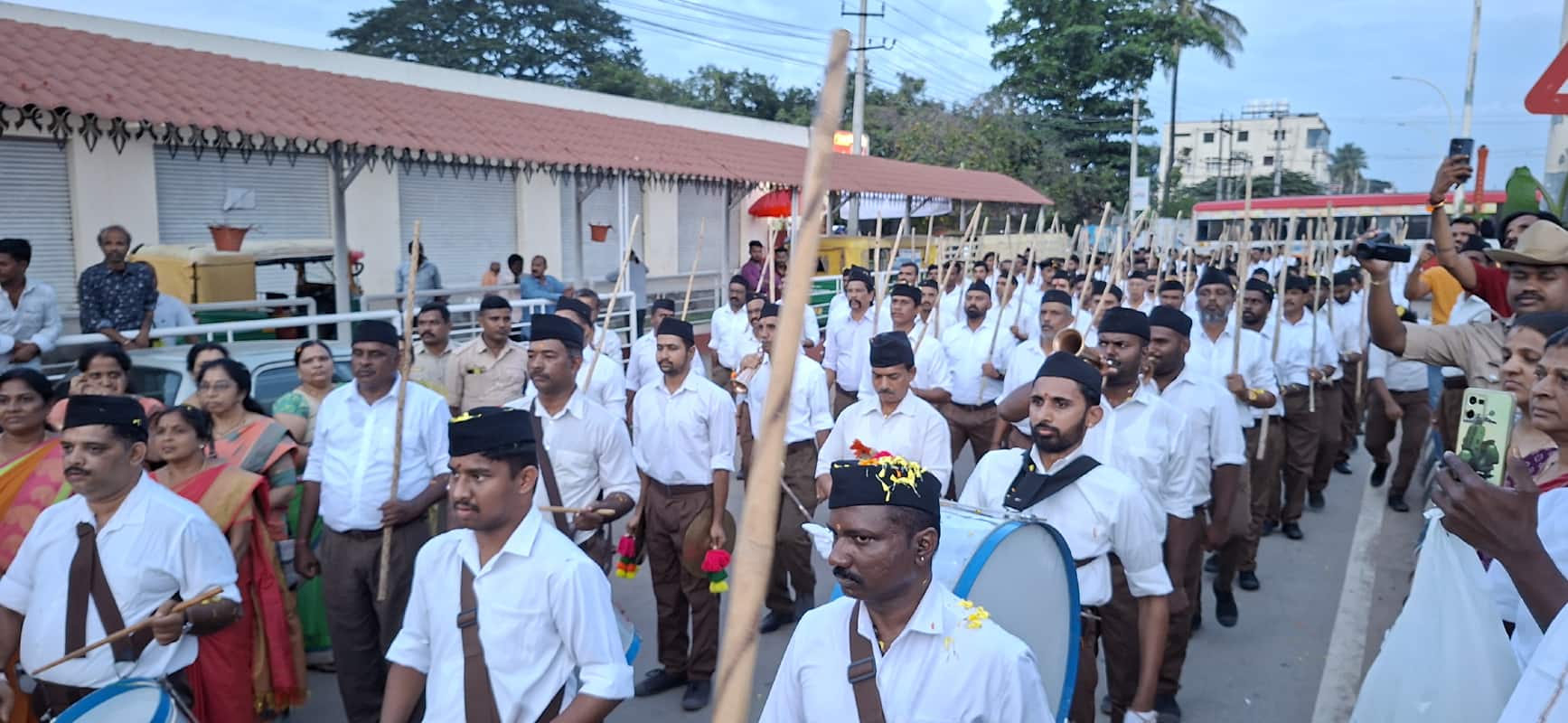 ರಾಷ್ಟ್ರೀಯ ಸ್ವಯಂ ಸೇವಕ ಸಂಘದ ಸ್ಥಾಪನೆಯ ಜನ್ಮಶತಾಬ್ದಿ ಪ್ರಯುಕ್ತ ಪಟ್ಟಣದ ಪ್ರಮುಖ ಬೀದಿಗಳಲ್ಲಿ ಸಂಘದ ಸ್ವಯಂ ಸೇವಕರು ಭಾರತಮಾತೆ ಭಾವಚಿತ್ರ ಮತ್ತು ಭಗವಾಧ್ವಜದೊಂದಿಗೆ ಪಥಸಂಚಲನ ನಡೆಸಿದರು.ಪಟ್ಟಣದ ಎಂಆರ್ವಿ ಮಿಲ್ ಆವರಣದಿಂದ ಹೊರಟ ಪಥಸಂಚಲನ ಬಸವೇಶ್ವರ ವೃತ್ತ, ಅಂಬೇಡ್ಕರ್ ವೃತ್ತ, ಕೆಎಲ್ವಿ ವೃತ್ತ, ಗಣಪತಿ-ಆಂಜನೇಯಸ್ವಾಮಿ ಸರ್ಕಲ್, ಜೆಟಿ ರಸ್ತೆ, ಕದಂಬ ವೃತ್ತ, ಹಳೇಬಸ್ ನಿಲ್ದಾಣದ ರಸ್ತೆ, ಸಂಗೊಳ್ಳಿ ರಾಯಣ್ಣ ವೃತ್ತದ ಮೂಲಕ ಸಾಗಿ ಕೆಎಸ್ಆರ್ಟಿಸಿ ಬಸ್ ನಿಲ್ದಾಣದ ಮುಂಭಾಗದಲ್ಲಿ ಅಂತ್ಯಗೊಂಡಿತು. ಬಸ್ ನಿಲ್ದಾಣದ ಮುಂಭಾಗದಲ್ಲಿ ಸಮಾವೇಶಗೊಂಡ ಗಣವೇಷಧಾರಿಗಳು, ಸ್ವಯಂಸೇವಕರು ಭಗವಾಧ್ವಜಕ್ಕೆ ಗೌರವ ವಂದನೆ ಸಲ್ಲಿಸಿ, ಆರ್ಎಸ್ಎಸ್ ಧ್ಯೇಯಗೀತೆ ಹಾಡಿ, ಭಾರತಮಾತೆ ಭಾವಚಿತ್ರಕ್ಕೆ ಪುಷ್ಪಾರ್ಚನೆ ಮಾಡಿ, ಭಗವಾಧ್ವಜವನ್ನು ಅವರೋಹಣಗೊಳಿಸಿದರು.ಪ್ರಮುಖ ರಸ್ತೆಗಳಲ್ಲಿ ಸಾಗಿದ ಗಣವೇಷಧಾರಿಗಳ ಮೇಲೆ ಸಾರ್ವಜನಿಕರು ಹಾಗೂ ಮಹಿಳೆಯರು ವಿವಿಧೆಡೆ ಪುಷ್ಪವೃಷ್ಟಿ ಸುರಿಸಿ ಸ್ವಾಗತಿಸಿ ಗೌರವ ಸಲ್ಲಿಸಿದರು. ಪಥಸಂಚಲನದಲ್ಲಿ ಸುಮಾರು 500ಕ್ಕು ಹೆಚ್ಚು ಗಣವೇಷಧಾರಿಗಳು ಭಾಗವಹಿಸಿದ್ದರು. ಜಿಲ್ಲಾ ಸಹ ಕಾರ್ಯವಾಹ ದಿನೇಶ್, ಸಂಚಾಲಕ ವಿಜಯಕುಮಾರ್, ಜಿಲ್ಲಾ ಪ್ರಚಾರಕ್ ಉಮೇಶ್ ನಂಜಿ, ಜಿಲ್ಲಾ ಕಾರ್ಯಕಾರಿಣಿಯ ಸೀತಾರಾಂ ಭರಣ್ಯ, ಹಿರಿಯ ಸ್ವಯಂ ಸೇವಕರಾದ ಕೆ.ಎಸ್.ಮಾಲತೀಶ್, ಎಚ್.ಎನ್.ಶಿವಶಂಕರ್, ಮಣಿ, ಶಾಮಿಯಾನಾ ಚಂದ್ರು, ಕೆ.ಎಚ್.ಎ.ಪ್ರಸನ್ನ, ಕಡೂರು ನಗರ ಕಾರ್ಯವಾಹ ಚೇತನ್, ಗ್ರಾಮಾಂತರ ಕಾರ್ಯವಾಹ ಸುಂದರೇಶ್ ಭಾಗವಹಿಸಿದ್ದರು. ಕಡೂರು ಪೊಲೀಸ್ ವೃತ್ತ ನಿರೀಕ್ಷಕ ಎಂ.ರಫೀಕ್ ನೇತೃತ್ವದಲ್ಲಿ ಪಿಎಸ್ಐ ಜಿ.ಆರ್.ಸಜಿತ್ಕುಮಾರ್ ಮತ್ತು ಪೊಲೀಸ್ ಸಿಬ್ಬಂದಿ ಭದ್ರತೆ ಒದಗಿಸಿದ್ದರು.