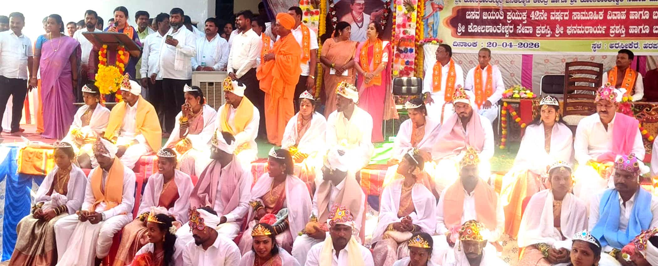 ಅವರು ತಾಲೂಕಿನ ಅರಸೀಕೆರೆ ಕೋಲಶಾಂತೇಶ್ವರ ಮಠದಲ್ಲಿ ಬಸವ ಜಯಂತಿ ಅಂಗವಾಗಿ ಆಯೋಜಿಸಿದ್ದ ಸಾಮೂಹಿಕ ವಿವಾಹ ಕಾರ್ಯಕ್ರಮದಲ್ಲಿ ಪಾಲ್ಗೊಂಡು ಸೋಮವಾರ ಮಾತನಾಡಿದರು.ಅತ್ತೆ, ಮಾವಂದಿರನ್ನು ತಂದೆ, ತಾಯಿಗಳಂತೆ ಕಾಣಬೇಕು. ಉತ್ತಮ ಬಾಂಧವ್ಯ ಹೊಂದಬೇಕು ಎಂದು ನುಡಿದರು. ಶಾಂತಲಿಂಗ ದೇಶೀಕೇಂದ್ರ ಮಹಾಸ್ವಾಮಿಗಳು ಕಾಯಕ ಯೋಗಿಗಳು, ನಡೆದಾಡುವ ದೇವರಿದ್ದಂತೆ. ಪ್ರತಿವರ್ಷ ಶಾಂತಲಿಂಗ ದೇಶೀಕೇಂದ್ರ ಮಹಾಸ್ವಾಮಿಗಳು ಬಸವಜಯಂತಿ ಪ್ರಯುಕ್ತ 42 ವರ್ಷದಿಂದ ಸಾಮೂಹಿಕ ವಿವಾಹಗಳನ್ನು ನಡೆಸಿಕೊಂಡು ಬಂದಿದ್ದಾರೆ. ತಾವೇ ಭೂಮಿಯಲ್ಲಿ ಉಳುಮೆ ಮಾಡಿ ಕಾಯಕ ಯೋಗಿಗಳಾಗಿದ್ದಾರೆ, ಮಠದ ಅಭಿವೃದ್ಧಿ ಜೊತೆಗೆ ಶಿಕ್ಷಣ ಸಂಸ್ಥೆಗಳನ್ನು ಕಟ್ಟಿ, ಶಿಕ್ಷಣ ನೀಡುವುದರ ಜೊತೆಗೆ ಅನ್ನ ದಾಸೋಹ ಸಹ ಮಾಡುತ್ತಿದ್ದಾರೆ ಎಂದು ಮೆಚ್ಚುಗೆ ವ್ಯಕ್ತಪಡಿಸಿದರು.