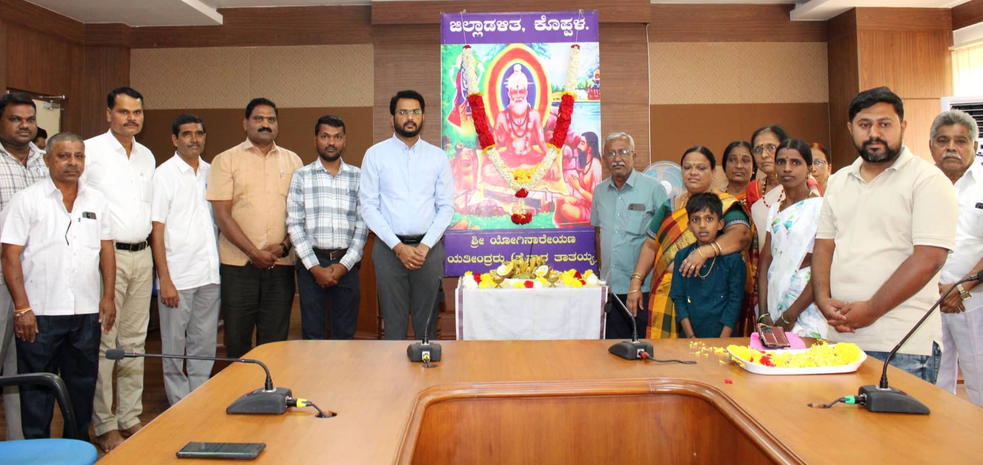 ಕೊಪ್ಪಳ: ನಗರದ ಜಿಲ್ಲಾಧಿಕಾರಿಗಳ ಕಚೇರಿ ಸಭಾಂಗಣದಲ್ಲಿ ಜಿಲ್ಲಾಡಳಿತ ಹಾಗೂ ಕನ್ನಡ ಮತ್ತು ಸಂಸ್ಕೃತಿ ಇಲಾಖೆಯ ಸಹಯೋಗದಲ್ಲಿ ಶ್ರೀಯೋಗಿನಾರೇಯಣ ಯತೀಂದ್ರರ (ಕೈವಾರ ತಾತಯ್ಯ) ಜಯಂತಿಯನ್ನು ಮಂಗಳವಾರ ಸರಳವಾಗಿ ಆಚರಿಸಲಾಯಿತು.