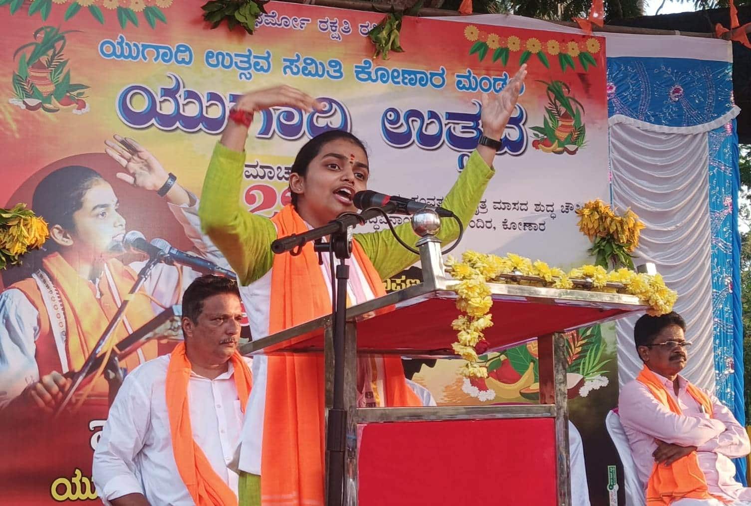 ಭಾನುವಾರ ಸಂಜೆ ಕೋಣಾರದಲ್ಲಿ ಯುಗಾದಿ ಉತ್ಸವ ಸಮಿತಿಯಿಂದ ಏರ್ಪಡಿಸಲಾದ ಯುಗಾದಿ ಉತ್ಸವ ಕಾರ್ಯಕ್ರಮದಲ್ಲಿ ದಿಕ್ಸೂಚಿ ಭಾಷಣ ಮಾಡಿದರು.ಹಿಂದೂಗಳು ಜಾತಿಗಿಂತ ಧರ್ಮಕ್ಕೆ ಹೆಚ್ಚು ಪ್ರಾಮುಖ್ಯತೆ ಕೊಡಬೇಕು. ಜಾತಿಯನ್ನು ಮನೆಗೆ ಸೀಮಿತಗೊಳಿಸಿ ಹೊರಗೆ ನಾವೆಲ್ಲರೂ ಹಿಂದೂ ಎಂದು ಸಾರಬೇಕು. ಧರ್ಮವೇ ಇಲ್ಲದಿದ್ದರೆ ಜಾತಿ ಹೇಗೆ ಉಳಿದೀತು ಎಂದ ಅವರು, ಮನೆ ಮನೆಗಳಲ್ಲಿಯೂ ಹಿಂದೂ ಧರ್ಮದ ಜಾಗೃತಿ, ಆಚಾರ ವಿಚಾರ, ಸಂಸ್ಕೃತಿ ಬೆಳಗಬೇಕು. ನಮ್ಮ ಮಕ್ಕಳಿಗೆ ಸನಾತನ ಧರ್ಮದ ಮಹತ್ವ, ಸಂಸ್ಕೃತಿ, ಆಚಾರ ವಿಚಾರದ ಬಗ್ಗೆ ತಿಳುವಳಿಕೆ ಮೂಡಿಸಬೇಕು. ಪ್ರತಿ ಮನೆಯಲ್ಲೂ ಮಕ್ಕಳಿಗೆ ಸನಾತನ ಧರ್ಮದ ಪಾಠ ಆಗಬೇಕು. ಈ ಕಾರ್ಯವನ್ನು ಮನೆಯ ಹಿರಿಯರು ಮಾಡಬೇಕು. ಮಕ್ಕಳಿಗೆ ಚಿಕ್ಕವರಿರುವಾಗಲೇ ಧರ್ಮದ ಬಗ್ಗೆ ಜಾಗೃತಿ ಮೂಡಿಸಿದರೆ ಅವರು ಎಂದಿಗೂ ಹಾದಿ ತಪ್ಪುವುದಿಲ್ಲ. ಶಿಕ್ಷಣದ ಜತೆಗೆ ನಮ್ಮ ಸಂಸ್ಕೃತಿಯೂ ಅವರಿಗೆ ಕಲಿಸಬೇಕು. ನಮ್ಮ ಹಿಂದೂ ಧರ್ಮದ ಬಗ್ಗೆ ನಾವೇ ಕಿಳರಿಮೆ ಹೊಂದಿದರೆ ಬೇರೆ ಯಾರು ಬಂದು ಧರ್ಮ ಉಳಿಸುತ್ತಾರೆ. ಹೀಗಾಗಿ ನಮ್ಮ ಧರ್ಮವನ್ನು ನಾವೇ ಉಳಿಸಿ, ರಕ್ಷಿಸಿಕೊಳ್ಳುವುದು ಅಗತ್ಯವಿದೆ ಎಂದರು.