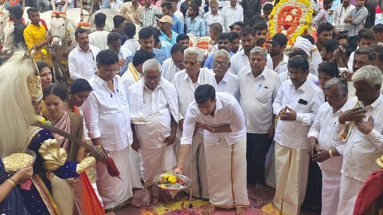 ಹನುಮಂತನಗರದ ಭಾರತೀ ವಸತಿ ಕಾಲೇಜಿನ ಉಪನ್ಯಾಸಕ ಶಿವಲಿಂಗೇಗೌಡ ಮಾತನಾಡಿ, ಸ್ವಾಮಿ ವಿವೇಕಾನಂದರ ಆದರ್ಶವನ್ನು ನಾವು ಪ್ರತಿಯೊಬ್ಬರು ಬೆಳೆಸಿಕೊಳ್ಳಬೇಕು. ವಿದ್ಯಾರ್ಥಿಗಳು ತಮ್ಮ ಚಂಚಲತೆಯನ್ನು ಬದಿಗಿಟ್ಟು ಮನಸ್ಸನ್ನು ನಿಯಂತ್ರಣದಲ್ಲಿಟ್ಟುಕೊಂಂಡರೆ ಗುರಿ ಸಾಧಿಸಲು ಸಾಧ್ಯವಾಗುತ್ತದೆ ಎಂದರು.ಇದೇ ವೇಳೆ ಶಾಲೆಯ ವಿದ್ಯಾರ್ಥಿಗಳು ಎತ್ತುಗಳನ್ನು ಕಾಲೇಜು ಆವರಣದಲ್ಲಿ ಕಿಚ್ಚು ಹಾಯಿಸಿದರು. ಇದಕ್ಕೂ ಮೊದಲು ಶ್ರೀಕಾಲಭೈರವೇಶ್ವರ ದೇವರ ಬಸವದೊಂದಿಗೆ ಪೂಜಾ ಕುಣಿತ, ವೀರಗಾಸೆ, ಪೂರ್ಣಕುಂಭ ಕಳಸ, ತಮಟೆ, ನಗಾರಿ ಹಾಗೂ ಎತ್ತುಗಳನ್ನು ಮದ್ದೂರು-ಮಳವಳ್ಳಿ ಹೆದ್ದಾರಿಯಲ್ಲಿ ಮೆರವಣಿಗೆ ಮಾಡಲಾಯಿತು. ಕಾರ್ಯಕ್ರಮದ ಆಯೋಜಕ ನಿರಜಾಕ್ಷ ಅವರನ್ನು ವಿದ್ಯಾರ್ಥಿಗಳು ಅಭಿನಂದಿಸಿ ಗೌರವಿಸಿದರು.