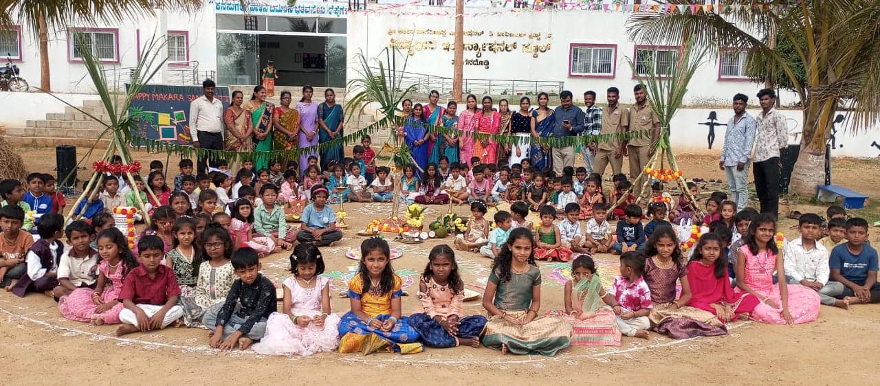 ಶಾಲೆ ಆವರಣದಲ್ಲಿ ರಂಗುರಂಗಿನ ರಂಗೋಲಿ ಬಿಡಿಸಿ ಸಂಭ್ರಮಿಸಿದರು ವಿದ್ಯಾರ್ಥಿಗಳಿಗೆ ಹಾಗೂ ಶಿಕ್ಷಕರಿಗೆ ಎಳ್ಳು ಬೆಲ್ಲ ನೀಡುವ ಮೂಲಕ ಆಚರಿಸಿದರು. ಕಾರ್ಯಕ್ರಮದಲ್ಲಿ ಶಿಕ್ಷಕಿಯರಾದ ಶೃತಿ, ಪೂರ್ಣಿಮಾ, ಮಹಾಲಕ್ಷ್ಮಿ, ಶ್ವೇತಾ, ಸುಮ ಭಾಗವಹಿಸಿದ್ದರು.