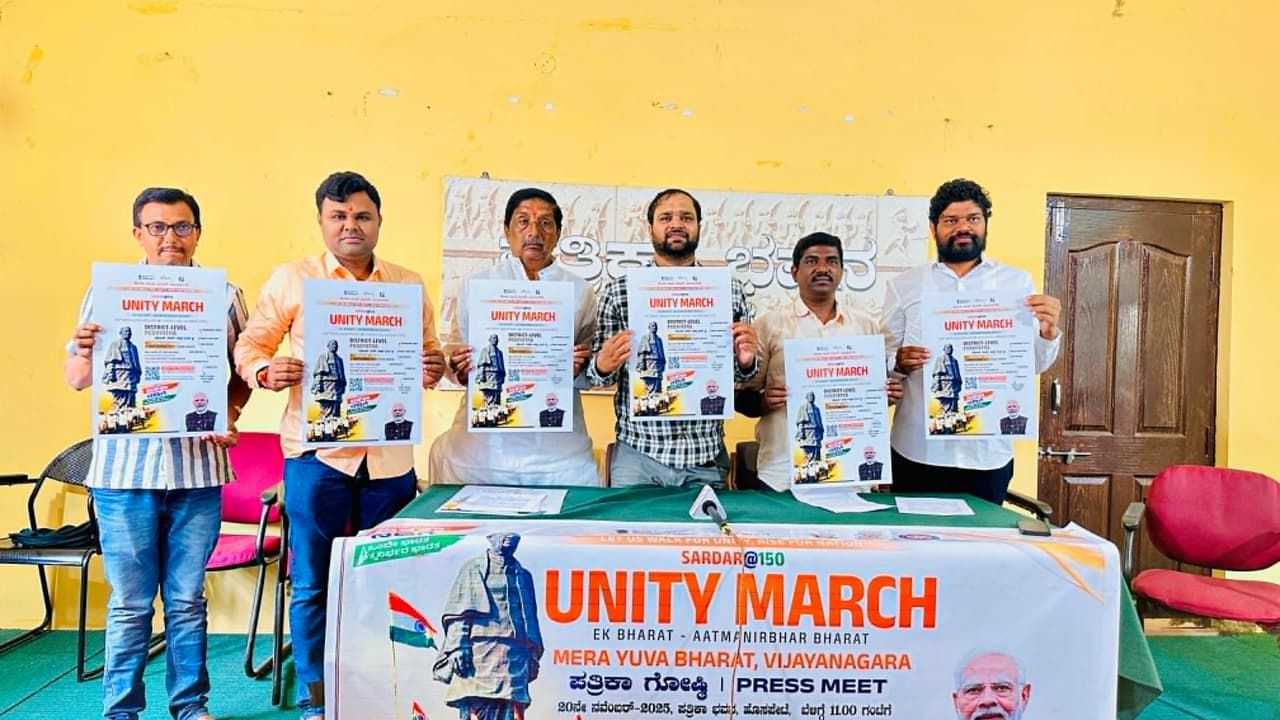 ಹೊಸಪೇಟೆಯಲ್ಲಿ ನಡೆದ ಪತ್ರಿಕಾಗೋಷ್ಠಿಯಲ್ಲಿ ಸರ್ದಾರ್ 150 ಯುನಿಟಿ ಮಾರ್ಚ್ ಅಭಿಯಾನದ ಪೋಸ್ಟರ್ ಬಿಡುಗಡೆಗೊಳಿಸಲಾಯಿತು.