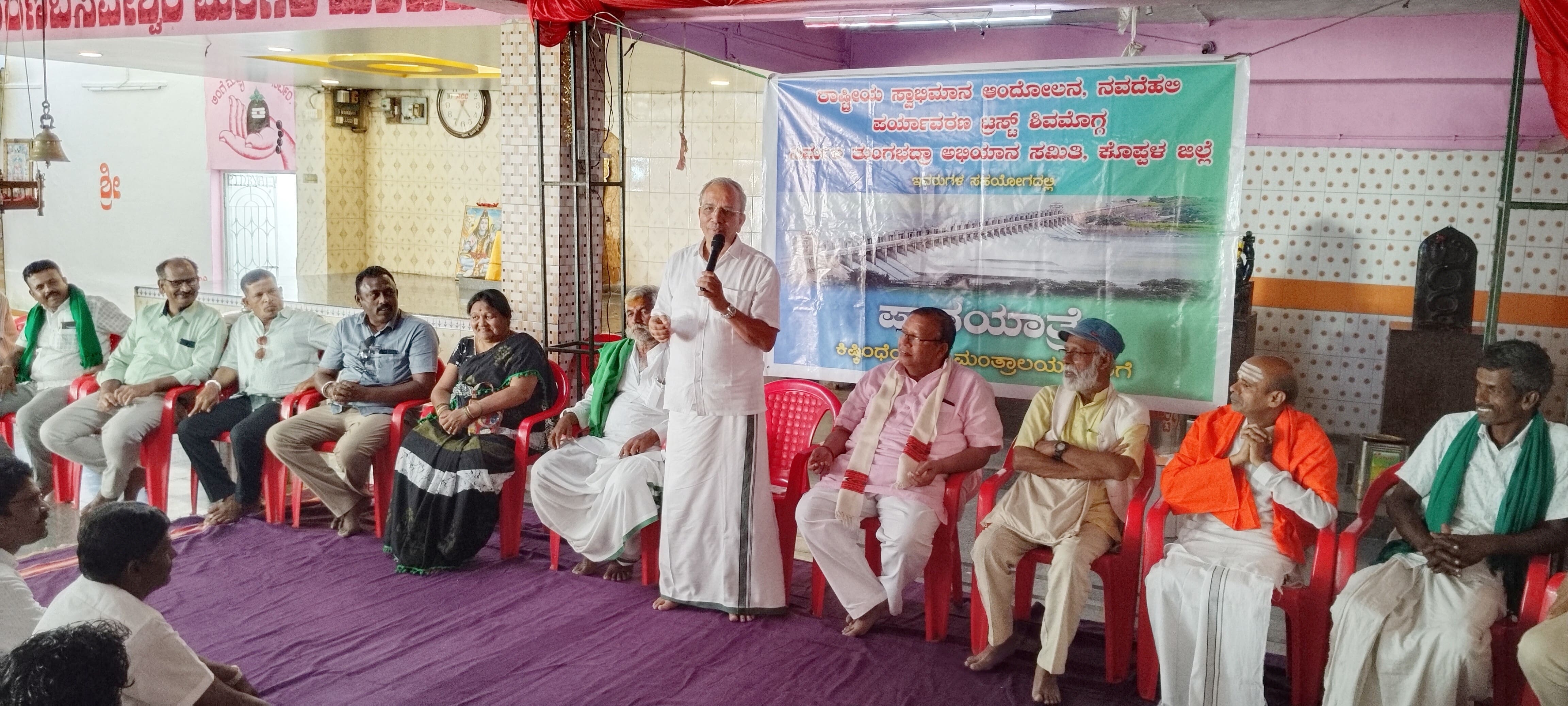 ಇಲ್ಲಿನ ಶ್ರೀಶರಣಬಸವೇಶ್ವರ ದೇವಸ್ಥಾನದಲ್ಲಿ ನವದೆಹಲಿಯ ರಾಷ್ಟ್ರೀಯ ಸ್ವಾಭಿಮಾನ ಆಂದೋಲನ, ಶಿವಮೊಗ್ಗದ ಪರ್ಯಾವರಣ ಟ್ರಸ್ಟ್ ಮತ್ತು ಜಿಲ್ಲಾ ನಿರ್ಮಲ ತುಂಗಭದ್ರಾ ಅಭಿಯಾನ ಸಮಿತಿ ಸಹಯೋಗದಲ್ಲಿ ನಡೆದ ನಿರ್ಮಲ ತುಂಗಭದ್ರಾ ಅಭಿಯಾನದ ಕಿಷ್ಕಿಂದೆಯಿಂದ ಮಂತ್ರಾಲಯದವರೆಗೆ ನಡೆಯಲಿರುವ ಮೂರನೇ ಹಂತದ ಪಾದಯಾತ್ರೆ ಪೂರ್ವಭಾವಿ ಸಭೆ ಉದ್ಧೇಶಿಸಿ ಮಾತನಾಡಿದರು.ತುಂಗಭದ್ರಾ ನದಿಯ ಮೂರು ಭಾಗಗಳಲ್ಲಿ ಪ್ರತ್ಯೇಕ ತೊಂದರೆಗಳಿದ್ದು, ಶೃಂಗೇರಿಯಿಂದ ಹರಿಹರ, ಹರಿಹರದಿಂದ ತುಂಗಭದ್ರಾ ಮತ್ತು ತುಂಗಭದ್ರಾದಿಂದ ರಾಯಚೂರುವರೆಗೂ ವಿಭಿನ್ನ ಸವಾಲು ಎದುರಿಸುತ್ತಿವೆ. ಮರಗಳು 30 ಸಾವಿರ ಲೀಟರ್ ನೀರನ್ನು ಹಿಡಿದು ನಂತರ ನದಿಗೆ ಬಿಡುವ ಕೆಲಸ ಮಾಡುತ್ತವೆ. ಆದರೆ, ಈ ಪ್ರಕ್ರಿಯೆಗೆ ಮರ ಕಡಿತ, ಮರಳು ಸಾಗಾಣಿಕೆ, ಗಣಿಗಾರಿಕೆ ಕಾರಣದಿಂದ ಅಡ್ಡಿ ಉಂಟಾಗಿದೆ. ಈ ಕಡೆ ಶೃಂಗೇರಿ-ಕಿಷ್ಕಿಂದರೆಗಿನ ಫ್ಯಾಕ್ಟರಿ, ನಗರ, ಪಟ್ಟಣಗಳ ಘನತಾಜ್ಯ, ಕಸಾಯಿಖಾನೆ ತ್ಯಾಜ್ಯ, ಕೃಷಿ ಚಟುಟಿಕೆಯ ರಾಸಾಯನಿಕ, ಮೈನಿಂಗ್ ತ್ಯಾಜ್ಯ ನೇರವಾಗಿ ನದಿಗೆ ಸೇರಿ ಕುಡಿಯಲು ಯೋಗ್ಯವಲ್ಲದ ಸ್ಥಿತಿಗೆ ತಲುಪಿದೆ ಎಂದು ಆತಂಕ ವ್ಯಕ್ತಪಡಿಸಿದರು.
