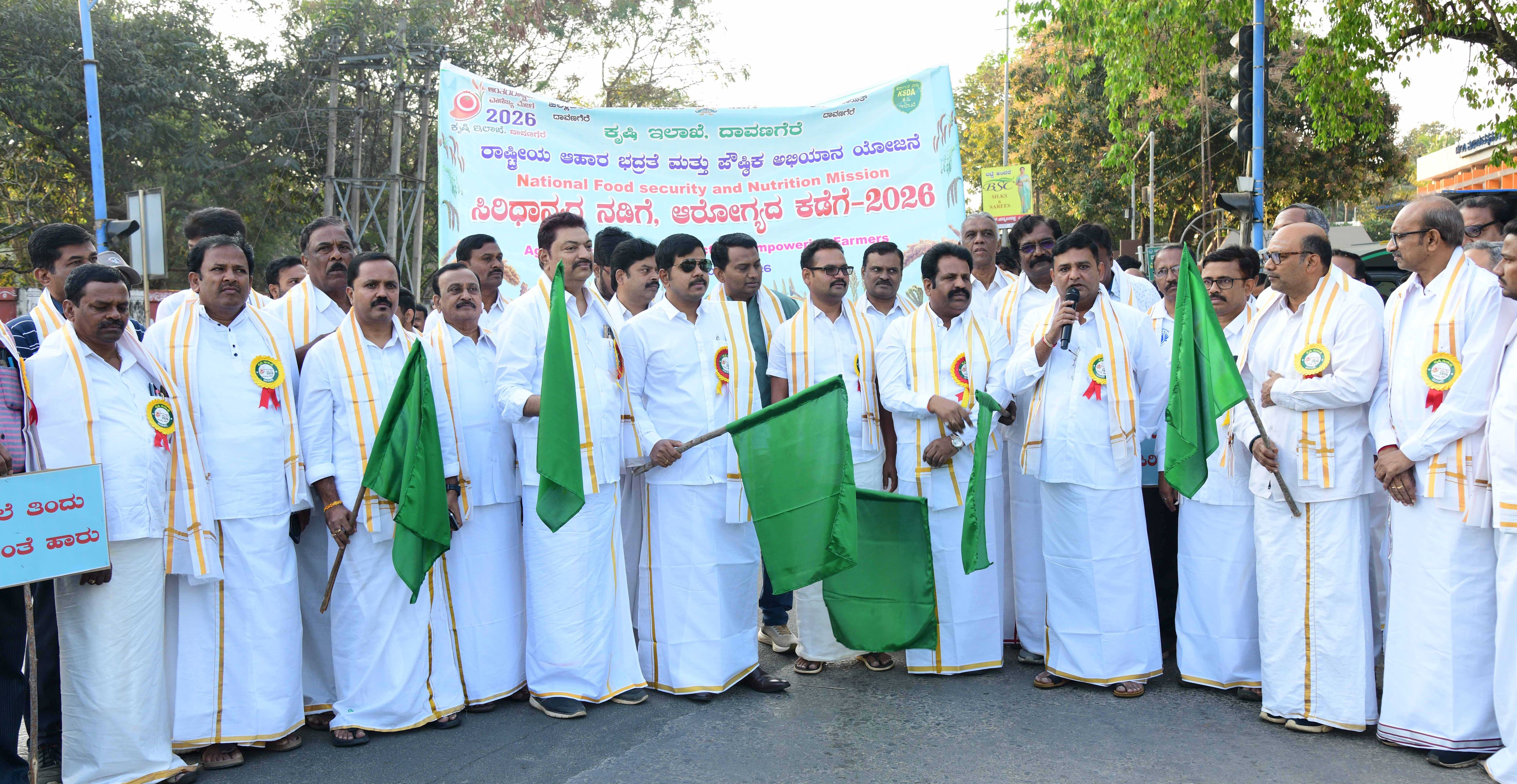 ದಾವಣಗೆರೆಯಲ್ಲಿ ಜಿಲ್ಲಾಡಳಿತ, ಜಿಲ್ಲಾ ಪಂಚಾಯಿತಿ, ಕೃಷಿ ಇಲಾಖೆ ಸಹಯೋಗದಲ್ಲಿ ನಡೆದ ಸಿರಿಧಾನ್ಯ ನಡಿಗೆ ಕಾರ್ಯಕ್ರಮವನ್ನು ಜಿಪಂ ಸಿಇಒ ಗಿತ್ತೆ ಮಾಧವ ವಿಠಲ ರಾವ್ ಉದ್ಘಾಟಿಸಿದರು.