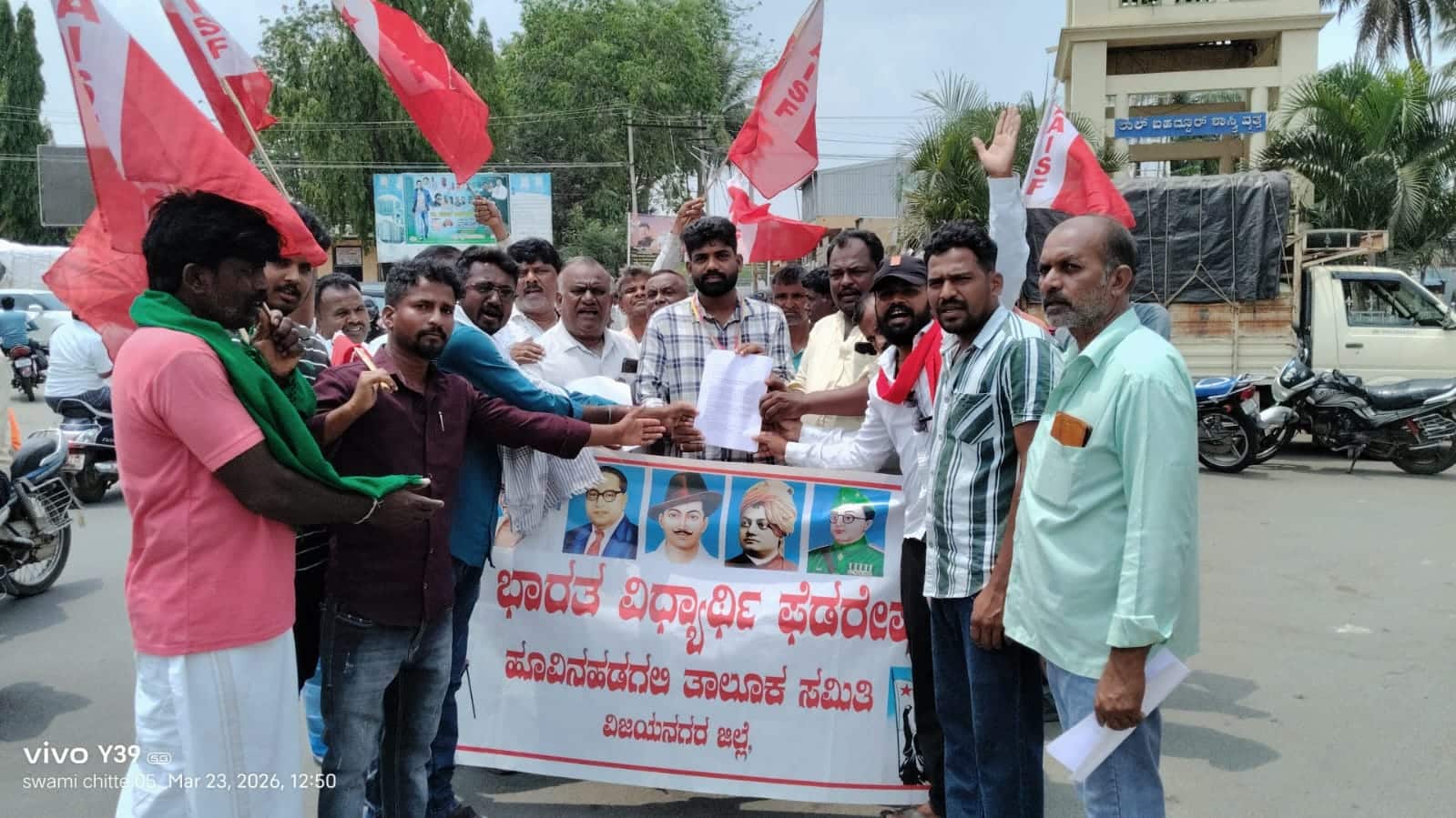 ಪ್ರತಿಭಟನೆಯಲ್ಲಿ ಎಐಎಸ್ಎಫ್ನ ತಾಲೂ ಅಧ್ಯಕ್ಷ ವಿರೂಪಾಕ್ಷ ಅಂಕ್ಲಿ, ಕಾರ್ಯದರ್ಶಿ ವೆಂಕಟೇಶ ನಾಯ್ಕ, ಸಂಘಟನೆಯ ಮುಖಂಡರಾದ ತರುಣ್, ವಿಕಾಸ, ಬಸವರಾಜ, ಎಸ್ಡಿಎಂಸಿ ಸದಸ್ಯರಾದ ಸುಲೇಮಾನ್, ರಾಜಕುಮಾರ, ಗಿರಿ, ಪ್ರಕಾಶ, ಹಣ್ಣಿನ ವೀರೇಶ, ಎಐವೈಎಫ್ನ ಬಸವರಾಜ ಸಂಶಿ, ಎಐಕೆಎಸ್ನ ಮುಕುಂದಗೌಡ ಹಾಗೂ ಎಸ್ಡಿಎಂಸಿ ಅಧ್ಯಕ್ಷ ಜಂಗ್ಲಿ ಸಾಬ್ ಸೇರಿದಂತೆ ಇತರರು ಕಂದಾಯ ಇಲಾಖೆಯ ಸಲೀಂ ಅವರಿಗೆ ಮನವಿ ಸಲ್ಲಿಸಿದರು.