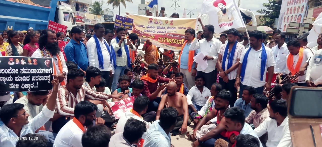 ಬೆಂಗಳೂರು : ಪರಿಶಿಷ್ಟ ಜಾತಿಯೊಳಗಿನ ಒಳಮೀಸಲಾತಿ ಸಂಬಂಧ ನ್ಯಾ.ಎಚ್.ಎನ್.ನಾಗಮೋಹನದಾಸ್ ವರದಿ ಶಿಫಾರಸ್ಸುಗಳನ್ನು ಕೈಬಿಡಬೇಕು ಎಂದು ಒತ್ತಾಯಿಸಿ ಬಂಜಾರ, ಭೋವಿ, ಕೊರಚ ಹಾಗೂ ಕೊರವ ಸಮುದಾಯಗಳ ಮುಖಂಡರು ಬೃಹತ್ ಪ್ರತಿಭಟನೆ ಮೂಲಕ ತಮ್ಮ ಆಕ್ರೋಶ ಹೊರಹಾಕಿದರು.