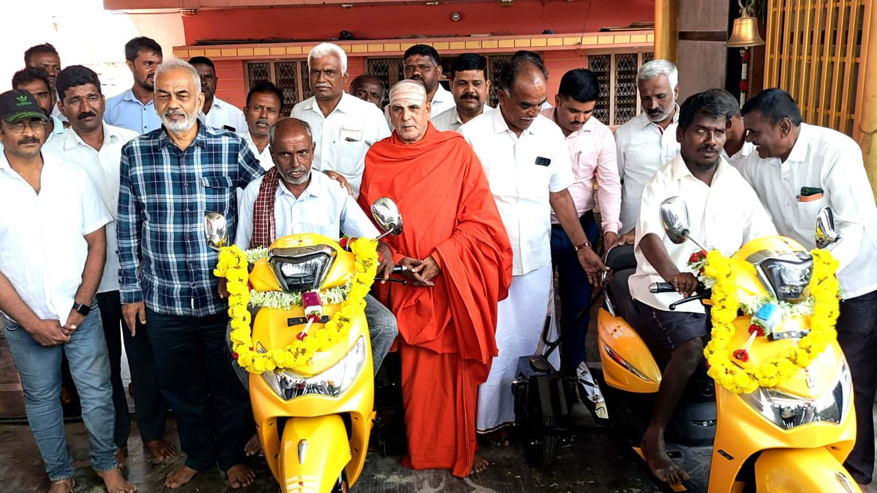 ತಾಲೂಕಿನ ತೇಜೂರು ಶ್ರೀ ಸಿದ್ಧರಾಮೇಶ್ವರ ಮಠದ ಮಠಧೀಶರಾದ ಪೂಜ್ಯ ಶ್ರೀ ಕಲ್ಯಾಣಸ್ವಾಮಿಗಳ ಉಪಸ್ಥಿತಿಯಲ್ಲಿ ತಾಲೂಕು ಪಂಚಾಯಿತಿ ಅನುದಾನದಲ್ಲಿ ಎರಡು ತ್ರಿಚಕ್ರ ಸ್ಕೂಟರ್ ವಿತರಣಾ ಕಾರ್ಯಕ್ರಮದ ಅಧ್ಯಕ್ಷತೆ ವಹಿಸಿ ಶಾಸಕ ಎ.ಮಂಜು ಮಾತನಾಡಿದರು. ಅಗತ್ಯ ಸೌಲಭ್ಯ ಕಲ್ಪಿಸಿ, ಸ್ವಾಭಿಮಾನದ ಬದುಕನ್ನು ರೂಪಿಸಿಕೊಳ್ಳಲು ನೆರವಾಗುವ ದೃಷ್ಠಿಯಲ್ಲಿ ವಿಶೇಷ ಚೇತನರಿಗೆ ಮೂರು ಚಕ್ರದ ಸ್ಕೂಟರ್ ನೀಡಲಾಗುತ್ತಿದ್ದು, ಇದರ ಸದುಪಯೋಗಪಡಿಸಿಕೊಂಡು ಜೀವನ ರೂಪಿಸಿಕೊಳ್ಳುವಂತೆ ಶಾಸಕ ಎ.ಮಂಜು ಸಲಹೆ ನೀಡಿದರು.