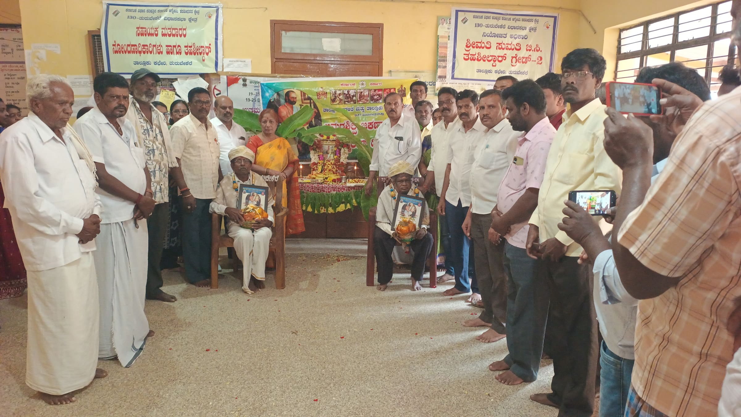 ತಾಲೂಕು ಕಚೇರಿ ಆವರಣದಲ್ಲಿ ತಾಲೂಕು ಆಡಳಿತ, ತಾಲೂಕು ವಿಶ್ವಕರ್ಮ ಸಮಾಜದ ಆಶ್ರಯದಲ್ಲಿ ನಡೆದ ಅಮರ ಶಿಲ್ಪಿ ಜಕಣಾಚಾರಿಯವರ ಜನ್ಮದಿನಾಚರಣೆಯಲ್ಲಿ ಮಾತನಾಡಿದ ಅವರು ಜಕಣಾಚಾರಿಯವರು ತುಮಕೂರು ಜಿಲ್ಲೆಯ ಕೈದಾಳದ ಹೆಮ್ಮೆಯ ಪುತ್ರರು ಎಂಬುದು ಹೆಮ್ಮೆಯ ವಿಷಯ. ಅವರು ಕೆತ್ತನೆ ಮಾಡಿರುವ ಹಲವಾರು ದೇಗುಲಗಳು ಇಂದಿಗೂ ಜನರ ಮನಸೂರೆಗೊಂಡಿದೆ. ಬೇಲೂರು, ಹಳೇಬೀಡು, ಸೋಮನಾಥಪುರ, ತುಮಕೂರು ಜಿಲ್ಲೆಯ ತುರುವೇಕೆರೆಯ ಗಂಗಾಧರೇಶ್ವರ, ಮೂಲೇಶಂಕರೇಶ್ವರ ಮತ್ತು ಚನ್ನಿಗರಾಯಸ್ವಾಮಿ ದೇವಾಲಯವೂ ಸೇರಿರುವುದು ಸಂತಸವಾಗಿದೆ. ನೂರಾರು ವರ್ಷಗಳ ಹಿಂದೆ ಅವರು ಮಾಡಿರುವ ಸಾಧನೆ ಇಂದಿಗೂ ಜನಮಾನಸದಲ್ಲಿ ಉಳಿದಿದೆ ಎಂದರು. ಇದೇ ಸಂದರ್ಭದಲ್ಲಿ ವಿಶ್ವಕರ್ಮ ಸಮಾಜದ ಹಿರಿಯರಾದ ತಂಡಗದ ಬೆಟ್ಟಾಚಾರ್, ಜಗದೀಶಾಚಾರ್ ರವರನ್ನು ಸಮಾಜದ ಅಧ್ಯಕ್ಷ ಟಿ.ಎನ್.ಅರುಣ್ ರವರ ನೇತೃತ್ವದಲ್ಲಿ ಗೌರವಿಸಲಾಯಿತು. ಈ ವೇಳೆ ತಹಸೀಲ್ದಾರ್ ಗ್ರೇಡ್ 2 ಸುಮತಿ, ಶಿರಸ್ತೇದಾರ್ ಸುನಿಲ್. ವಿಶ್ವಕರ್ಮ ಸಮಾಜದ ಅಧ್ಯಕ್ಷ ಟಿ.ಎನ್.ಅರುಣ್, ಉಪಾಧ್ಯಕ್ಷರಾದ ಪ್ರೇಮ್ ಕುಮಾರ್, ನಾಗರಾಜಾಚಾರ್, ಪ್ರಧಾನ ಕಾರ್ಯದರ್ಶಿ ಸತೀಶ್, ನಿರ್ದೇಶಕರಾದ ನಂದೀಶ್, ಕುಮಾರ್, ಮಂಜುನಾಥ್, ವೀರೇಶ್ ಸೇರಿದಂತೆ ಹಲವರು ಉಪಸ್ಥಿತರಿದ್ದರು.