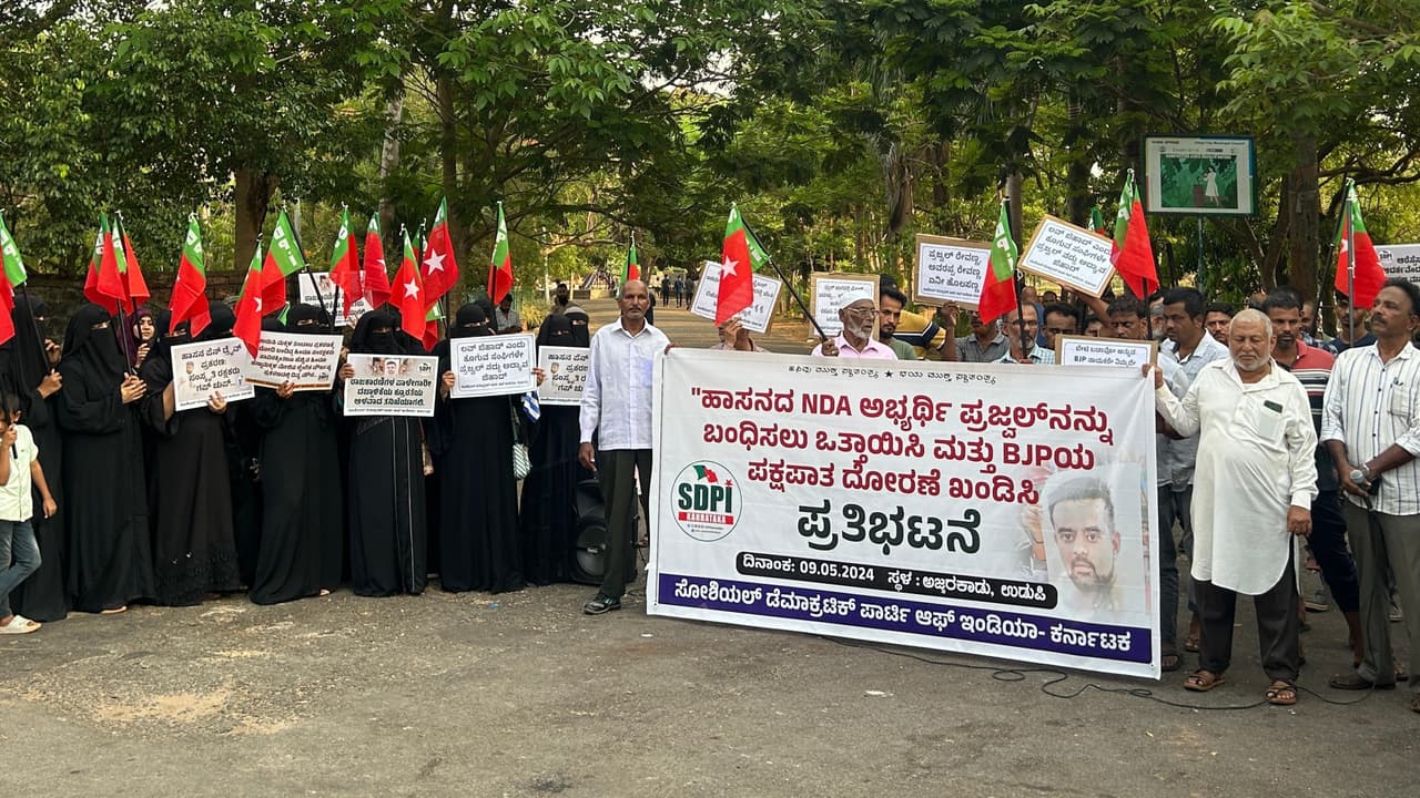 ಕನ್ನಡಪ್ರಭ ವಾರ್ತೆ ಉಡುಪಿಹಾಸನ ಲೋಕಸಭಾ ಕ್ಷೇತ್ರದ ಎನ್ಡಿಎ ಅಭ್ಯರ್ಥಿ ಪ್ರಜ್ವಲ್ ರೇವಣ್ಣರನ್ನು ಬಂಧಿಸಲು ಒತ್ತಾಯಿಸಿ ಮತ್ತು ಬಿಜೆಪಿಯ ಪಕ್ಷಪಾತ ಧೋರಣೆ ಖಂಡಿಸಿ ಸೋಶಿಯಲ್ ಡೆಮೋಕ್ರೆಟಿಕ್ ಪಾರ್ಟಿ ಆಫ್ ಇಂಡಿಯಾ ಉಡುಪಿ ಜಿಲ್ಲಾ ಸಮಿತಿ ವತಿಯಿಂದ ಗುರುವಾರ ನಗರದ ಅಜ್ಜರಕಾಡು ಹುತಾತ್ಮ ಯೋಧರ ಸ್ಮಾರಕದ ಬಳಿ ಪ್ರತಿಭಟನೆ ನಡೆಸಲಾಯಿತು.