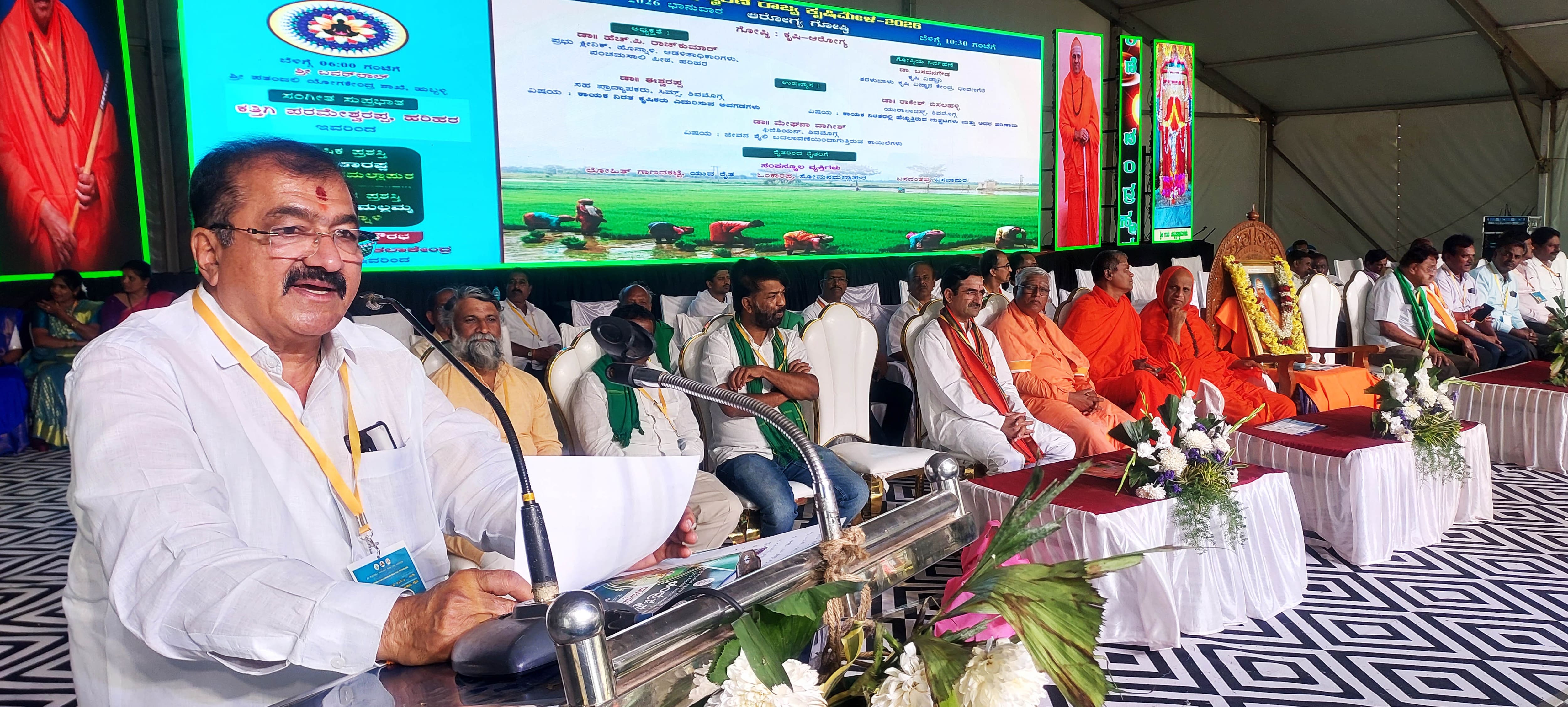 ಹೊನ್ನಾಳಿ ಹಿರೇಕಲ್ಮಠದಲ್ಲಿ ಚಂದ್ರ ಸ್ಮರಣೆ-2026 ರಾಜ್ಯಮಟ್ಟದ ಕೃಷಿ ಮೇಳದ ಮೂರನೇ ದಿನದ ಧರ್ಮಸಭೆಯಲ್ಲಿ ಹರಿಹರ ಕ್ಷೇತ್ರ ಶಾಸಕ ಬಿ.ಪಿ. ಹರೀಶ್ ಮಾತನಾಡಿದರು.
