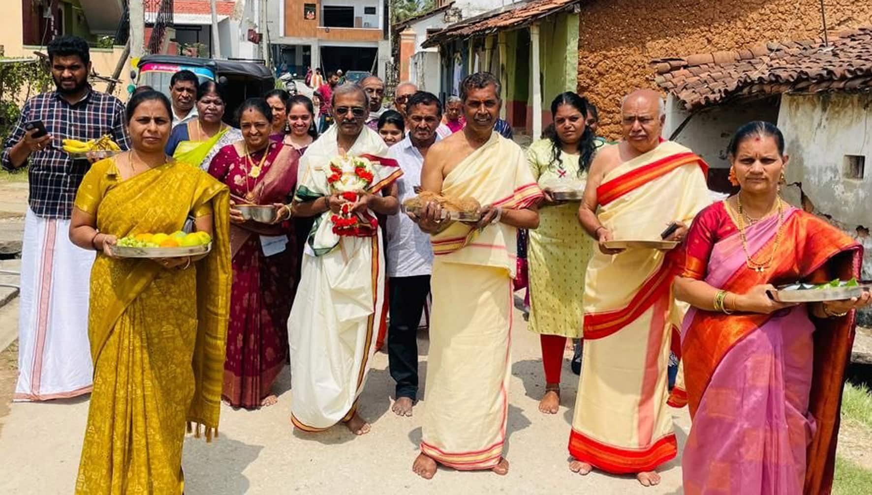 4ಕೆಎಂಎನ್ ಡಿ19ಕಿಕ್ಕೇರಿಯಲ್ಲಿ ವಿಪ್ರ ಬಾಂಧವ ಸೇವಾ ಸಮಿತಿ ಆಶ್ರಯದಲ್ಲಿ ಸೀತಾರಾಮ ಕಲ್ಯಾಣಮಹೋತ್ಸವಕ್ಕೆ ಫಲತಾಂಬೂಲವನ್ನು ಹಿಡಿದು ಸಾಗುತ್ತಿರುವ ವಿಪ್ರ ವೃಂದದವರು.