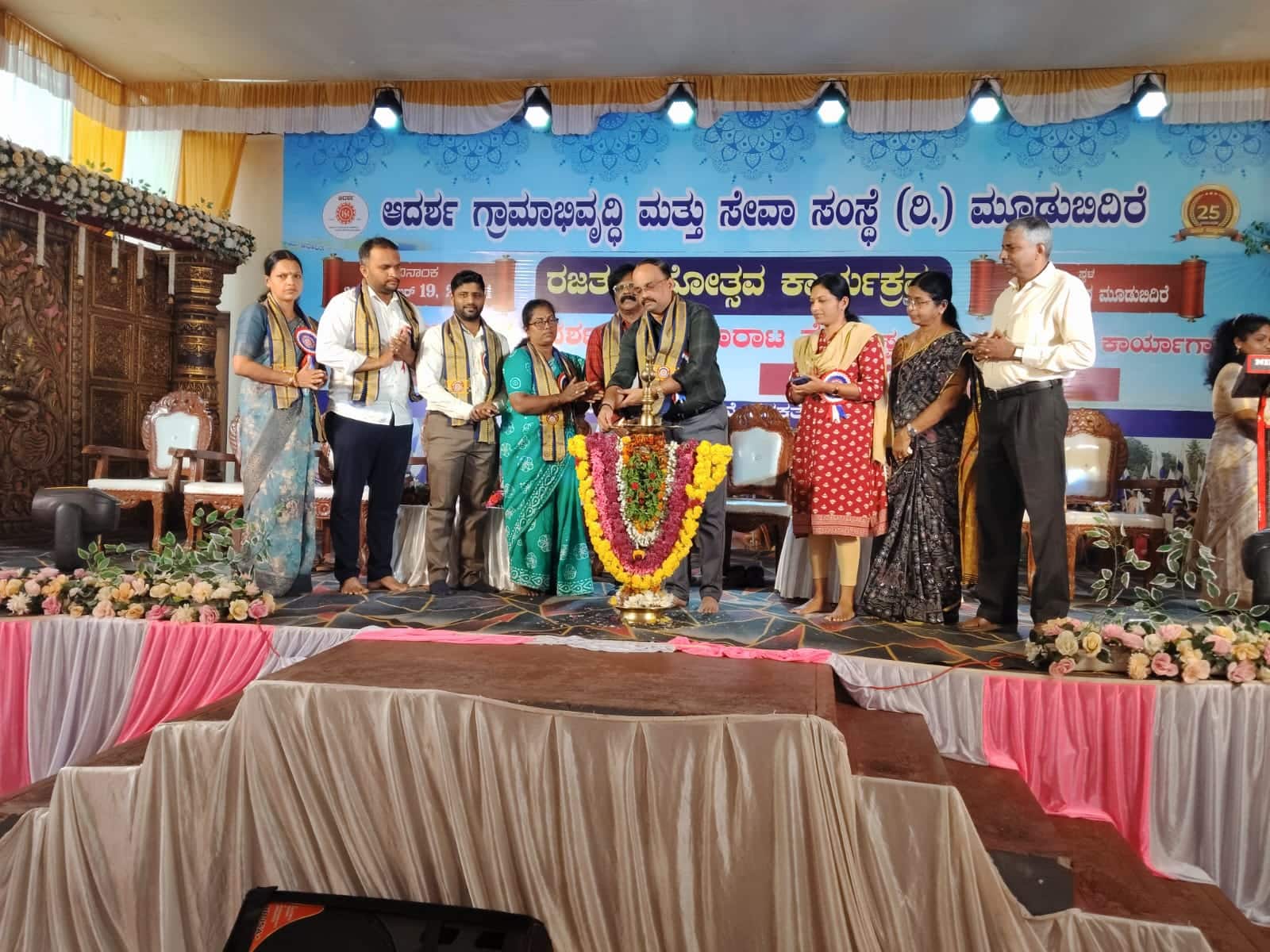 ಮೂಡುಬಿದಿರೆ: ಆದರ್ಶ ಗ್ರಾಮಾಭಿವೃದ್ಧಿ ಮತ್ತು ಸೇವಾ ಸಂಸ್ಥೆ ಮೂಡುಬಿದಿರೆ ಇದರ ರಜತ ಮಹೋತ್ಸವ ಅಂಗವಾಗಿ ಸಮೃದ್ಧಿ ಸಂಜೀವಿನಿ ಪಂಚಾಯತ್ ಮಟ್ಟದ ಒಕ್ಕೂಟ ಹೊಸಬೆಟ್ಟು ಸಹಕಾರದಲ್ಲಿ ಸ್ವ ಉದ್ಯೋಗ ತರಬೇತಿ ಕಾರ್ಯಾಗಾರ ಮತ್ತು ಗ್ರಾಮೀಣ ಉತ್ಪನ್ನಗಳ ಪ್ರದರ್ಶನ ಮತ್ತು ಮಾರಾಟ ಮೇಳ ಇಲ್ಲಿನ ಸಮಾಜ ಮಂದಿರದಲ್ಲಿ ಜರುಗಿತು.