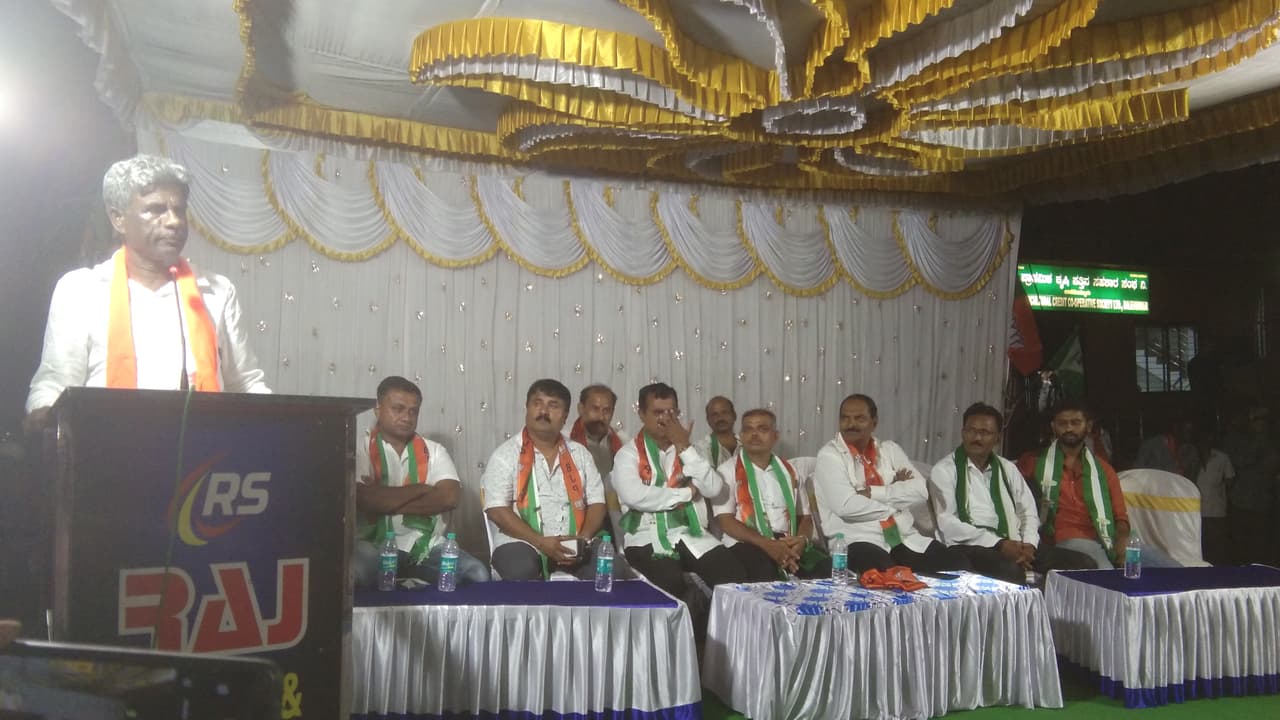ಪಟ್ಟಣದ ಜೇಸಿ ವೃತ್ತದಲ್ಲಿ ನಡೆದ ಪ್ರಚಾರ ಸಭೆಯಲ್ಲಿ ಕೋಟಾ ಶ್ರೀನಿವಾಸ ಪೂಜಾರಿ