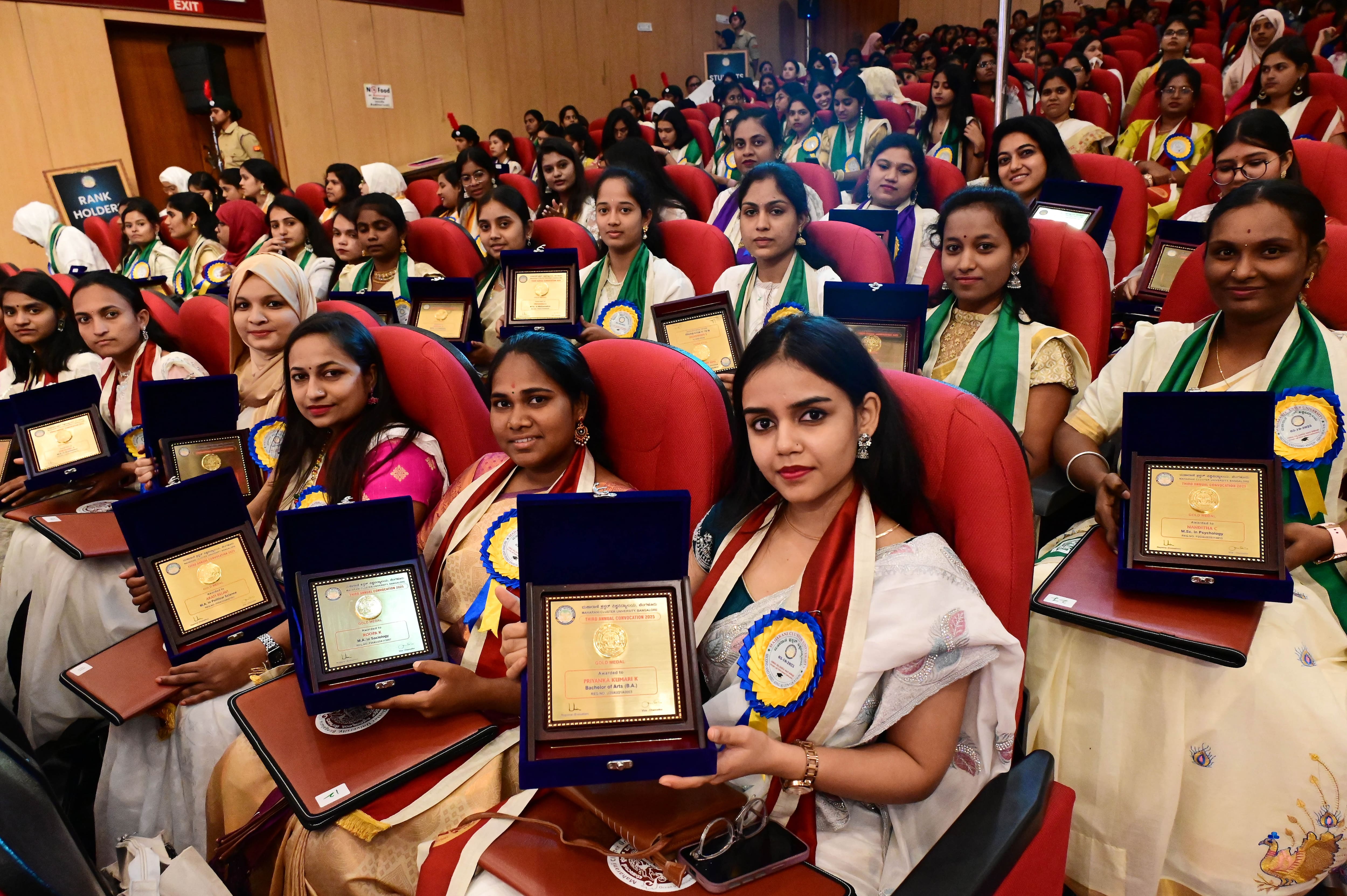 ಪಠ್ಯದ ಬಗ್ಗೆಯೂ ಚರ್ಚೆಯಾಗಲಿ: ಮಹಿಳಾ ವಿಶ್ವವಿದ್ಯಾಲಯಗಳು ಅಳವಡಿಸಿಕೊಂಡಿರುವ ಪಠ್ಯಕ್ರಮವು ಮಹಿಳಾ ಸಬಲೀಕರಣಕ್ಕೆ, ಅವರನ್ನು ವೈಚಾರಿಕರನ್ನಾಗಿ ಮಾಡಲು ಪೂರಕವಾಗಿದೆಯೇ, ಅವರಲ್ಲಿನ ಪರಂಪರಾಗತ ಜ್ಞಾನವನ್ನು ಗುರುತಿಸಿ ಮಾನ್ಯತೆ ನೀಡುವ ಕೆಲಸವಾಗುತ್ತಿದೆಯೇ ಅಥವಾ ಇತರೆ ವಿಶ್ವವಿದ್ಯಾಲಯಗಳ ಮಾದರಿಯಲ್ಲೇ ತಾವೂ ಪಠ್ಯಕ್ರಮ ಅನುಸರಿಸುತ್ತಿವೆಯೇ ಎಂಬ ಬಗ್ಗೆ ಮುಕ್ತ ಚರ್ಚೆ ಆಗಬೇಕಿದೆ ಎಂದು ಕೂಡ ಅವರು ಪ್ರತಿಪಾದಿಸಿದರು.ಕಾರ್ಯಕ್ರಮದಲ್ಲಿ ವಿಶ್ವವಿದ್ಯಾಲಯದ ಕುಲಾಧಿಪತಿಯೂ ಆದ ರಾಜ್ಯಪಾಲ ಥಾವರ್ಚಂದ್ ಗೆಹಲೋತ್, ಉನ್ನತ ಶಿಕ್ಷಣ ಸಚಿವ ಡಾ.ಎಂ.ಸಿ.ಸುಧಾಕರ್, ಕುಲಪತಿ ಡಾ.ಟಿ.ಎಂ.ಮಂಜುನಾಥ, ಕುಲಸಚಿವ(ಆಡಳಿತ) ಬಿ.ಸೀಮಾ ನಾಯಕ್, ಕುಲಸಚಿವ (ಮೌಲ್ಯಮಾಪನ) ಪ್ರೊ.ಎಸ್.ಸತೀಶ್, ವಿತ್ತಾಕಾರಿ ಎಂ.ಎಸ್.ಚೇತನ್ ಕುಮಾರ್ ಮತ್ತಿತರರಿದ್ದರು. 3573 ವಿದ್ಯಾರ್ಥಿನಿಯರಿಗೆ ಪದವಿ ಪ್ರದಾನಮಹಾರಾಣಿ ಕ್ಲಸ್ಟರ್ ವಿವಿಯು 2023-24 ಮತ್ತು 2024-25ನೇ ಸಾಲಿನ ಕ್ರಮವಾಗಿ ಎರಡು ಮತ್ತು ಮೂರನೇ ಘಟಿಕೋತ್ಸವ ಒಟ್ಟಿಗೆ ಆಯೋಜಿಸಿದ್ದರಿಂದ ಎರಡೂ ವರ್ಷದಿಂದ ವಿವಿಧ ಪದವಿ ಮತ್ತು ಸ್ನಾತಕೋತ್ತರ ಪದವಿ ವಿಭಾಗದಿಂದ ಒಟ್ಟಾರೆ 3573 ವಿದ್ಯಾರ್ಥಿನಿಯರಿಗೆ ಪದವಿ ಪ್ರದಾನ ಮಾಡಲಾಯಿತು. 107 ವಿದ್ಯಾರ್ಥಿನಿಯರಿಗೆ ವಿವಿಧ ವಿಭಾಗದಲ್ಲಿ ರ್ಯಾಂಕ್ ಮತ್ತು 52 ವಿದ್ಯಾರ್ಥಿಗಳಿಗೆ ಚಿನ್ನದ ಪದಕ ನೀಡಲಾಯಿತು.