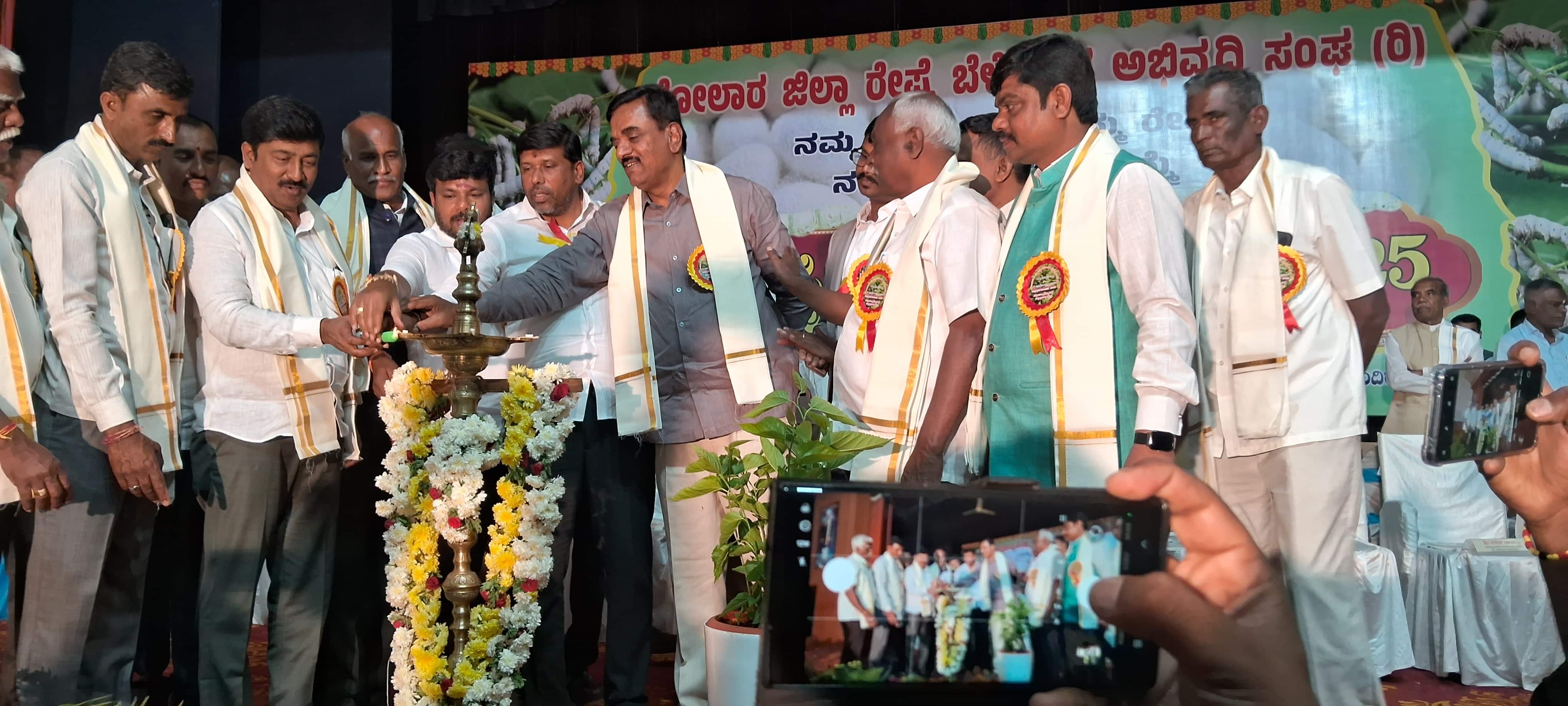 ರಾಜ್ಯದಲ್ಲಿ ಅರಣ್ಯ ಇಲಾಖೆಯವರು ೯ ಲಕ್ಷ ಎಕರೆ ಜಮೀನನ್ನು ರೈತರು ಒತ್ತುವರಿ ಮಾಡಿದ್ದಾರೆಂದು ಸಮರ ಸಾರಿದ್ದಾರೆ. ರೈತರ ಜಮೀನು ಅರಣ್ಯಕ್ಕೆ ಸೇರಿದ್ದಾರೆ ಎನ್ನುತ್ತಿದ್ದಾರೆ. ಅದರೆ ರೈತರು ಬೆಳೆಯುವುದು ನಿಲ್ಲಿಸಿದರೆ ಗತಿಯೇನು ಎಂಬುವುದು ಊಹೆಗೂ ಮೀರಿದ್ದು, ಕಂದಾಯ ಇಲಾಖೆ ನೀಡಿರುವ ದಾಖಲಾತಿಗಳ ಜಮೀನುಗಳೆಲ್ಲಾ ಅರಣ್ಯಕ್ಕೆ ಸೇರಿದ್ದು ಎಂಬುವುದು ಸಮಂಜಸವಲ್ಲ ಎಂದರು.ಶಾಸಕ ಕೊತ್ತೂರು ಮಂಜುನಾಥ್, ಎಂಎಲ್ಸಿ ಎಂ.ಎಲ್.ಅನಿಲ್ಕುಮಾರ್, ಸಂಘದ ಅಧ್ಯಕ್ಷ ಕೆ.ವಿ.ಸತೀಶ್, ಕೇಂದ್ರ ರೇಷ್ಮೆ ಮಂಡಳಿ ಜಂಟಿ ಕಾರ್ಯದರ್ಶಿ ನರೇಶ್ಬಾಬು, ರೇಷ್ಮೆ ಇಲಾಖೆ ಉಪನಿರ್ದೇಶಕ ಆಂಜನೇಯರೆಡ್ಡಿ, ಗೂಡು ಮಾರುಕಟ್ಟೆ ಉಪ ನಿರ್ದೇಶಕ ಎಸ್.ಎನ್.ಶ್ರೀನಿವಾಸ್, ಕೃಷಿಕ ಸಮಾಜ ಅಧ್ಯಕ್ಷ ಡಿ.ಎಲ್.ನಾಗರಾಜ್, ಸಂದ ಪ್ರಧಾನ ಕಾರ್ಯದರ್ಶಿ ಶಂಕರೇಗೌಡ, ಉಪಾಧ್ಯಕ್ಷ ಎಚ್.ವಿ.ರಮೇಶ್ ಇದ್ದರು.