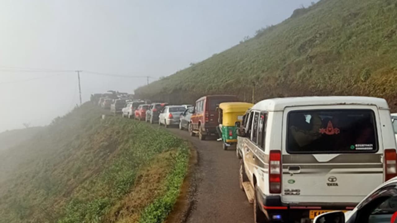 ಚಿಕ್ಕಮಗಳೂರು, ಸರಣಿ ರಜೆಗಳಿಂದಾಗಿ ಜಿಲ್ಲೆಗೆ ಬರುತ್ತಿರುವ ಪ್ರವಾಸಿಗರ ಸಂಖ್ಯೆ ಹೆಚ್ಚಳವಾಗುತ್ತಿದೆ. ಶುಕ್ರವಾರ ಸುಮಾರು ಒಂದು ಸಾವಿರಕ್ಕೂ ಹೆಚ್ಚು ವಾಹನಗಳು ಗಿರಿ ಪ್ರದೇಶಕ್ಕೆ ಬಂದಿದ್ದರಿಂದ ಮುಳ್ಳಯ್ಯನಗಿರಿ ರಸ್ತೆಯಲ್ಲಿ ಕೆಲ ಸಮಯ ಟ್ರಾಫಿಕ್ ಜಾಮ್ ಆಗಿತ್ತು.