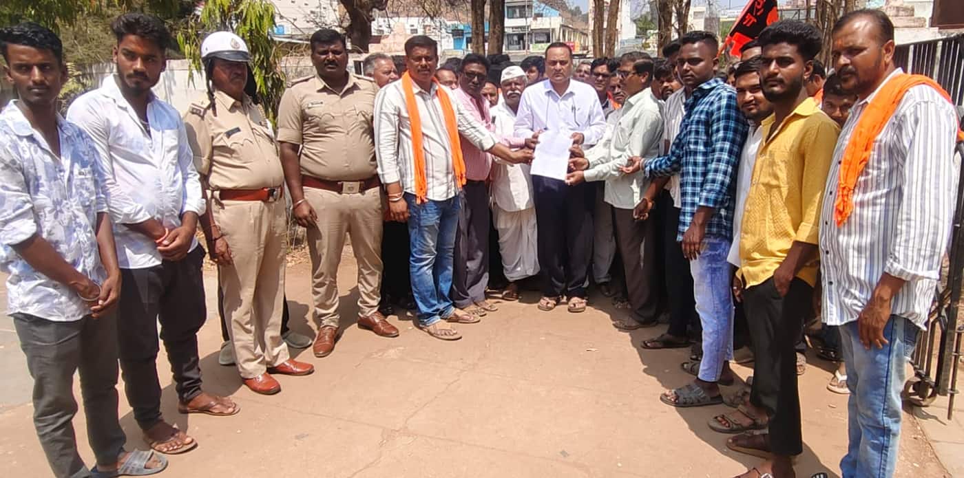 ಗಜೇಂದ್ರಗಡ: ಬಾಗಲಕೋಟೆಯಲ್ಲಿ ನಡೆದ ಛತ್ರಪತಿ ಶಿವಾಜಿ ಜಯಂತಿ ಮೆರವಣಿಗೆ ಮೇಲೆ ಕಲ್ಲು, ಚಪ್ಪಲಿ ತೂರಾಟ ನಡೆಸಿದವರಿಗೆ ಕಠಿಣ ಶಿಕ್ಷೆ ವಿಧಿಸಬೇಕು ಎಂದು ಆಗ್ರಹಿಸಿ ವಿಹಿಂಪ, ಬಜರಂಗದಳ ಹಾಗೂ ಕ್ಷತ್ರೀಯ ಮರಾಠಾ ಸಮಾಜದ ಕಾರ್ಯಕರ್ತರು ಬುಧವಾರ ಪ್ರತಿಭಟನೆ ನಡೆಸಿ, ತಹಸೀಲ್ದಾರ್ ಕಚೇರಿಗೆ ತೆರಳಿ ಮನವಿ ಪತ್ರ ಸಲ್ಲಿಸಿದರು.
